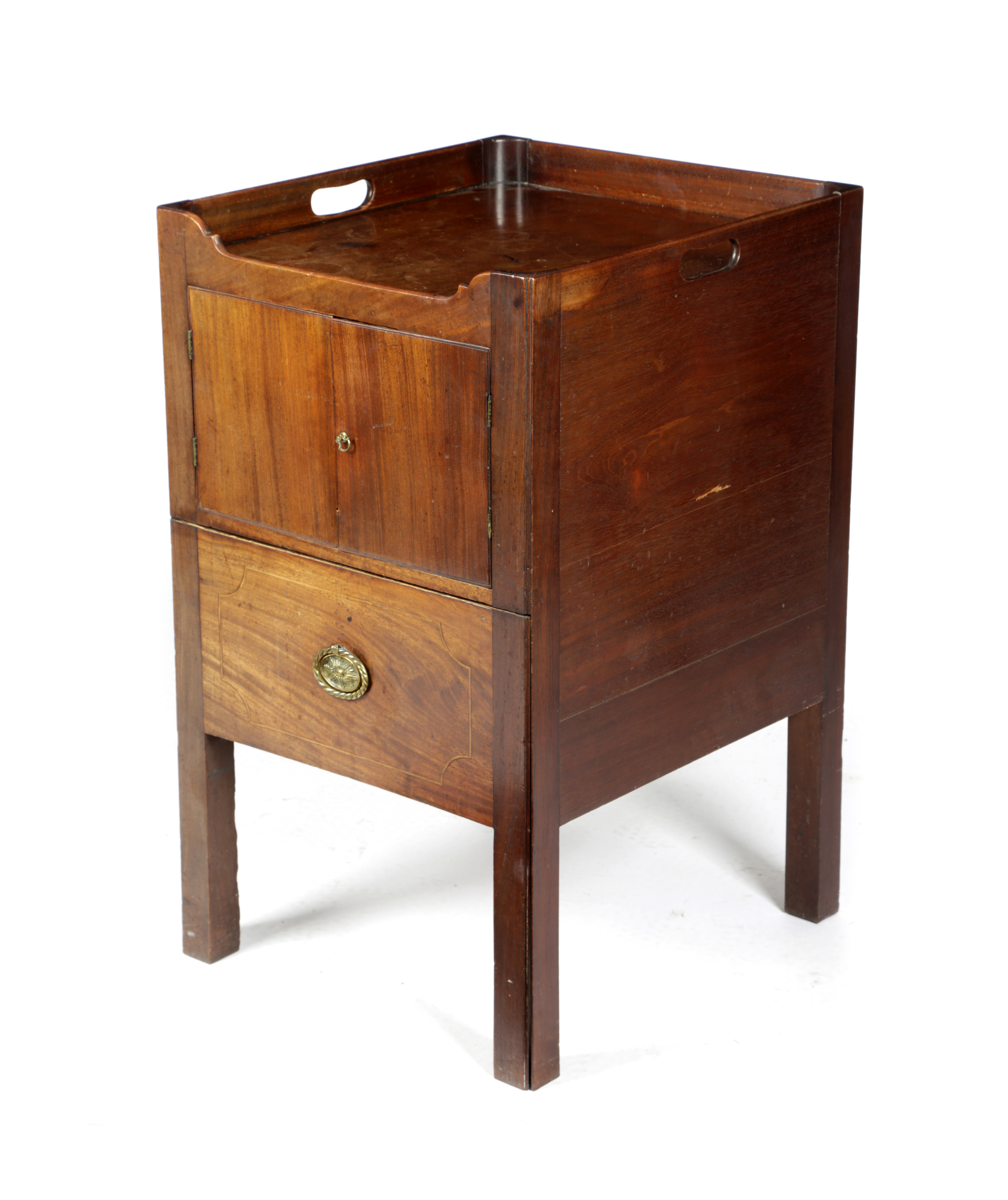 A GEORGE III MAHOGANY TRAY-TOP BEDSIDE COMMODE