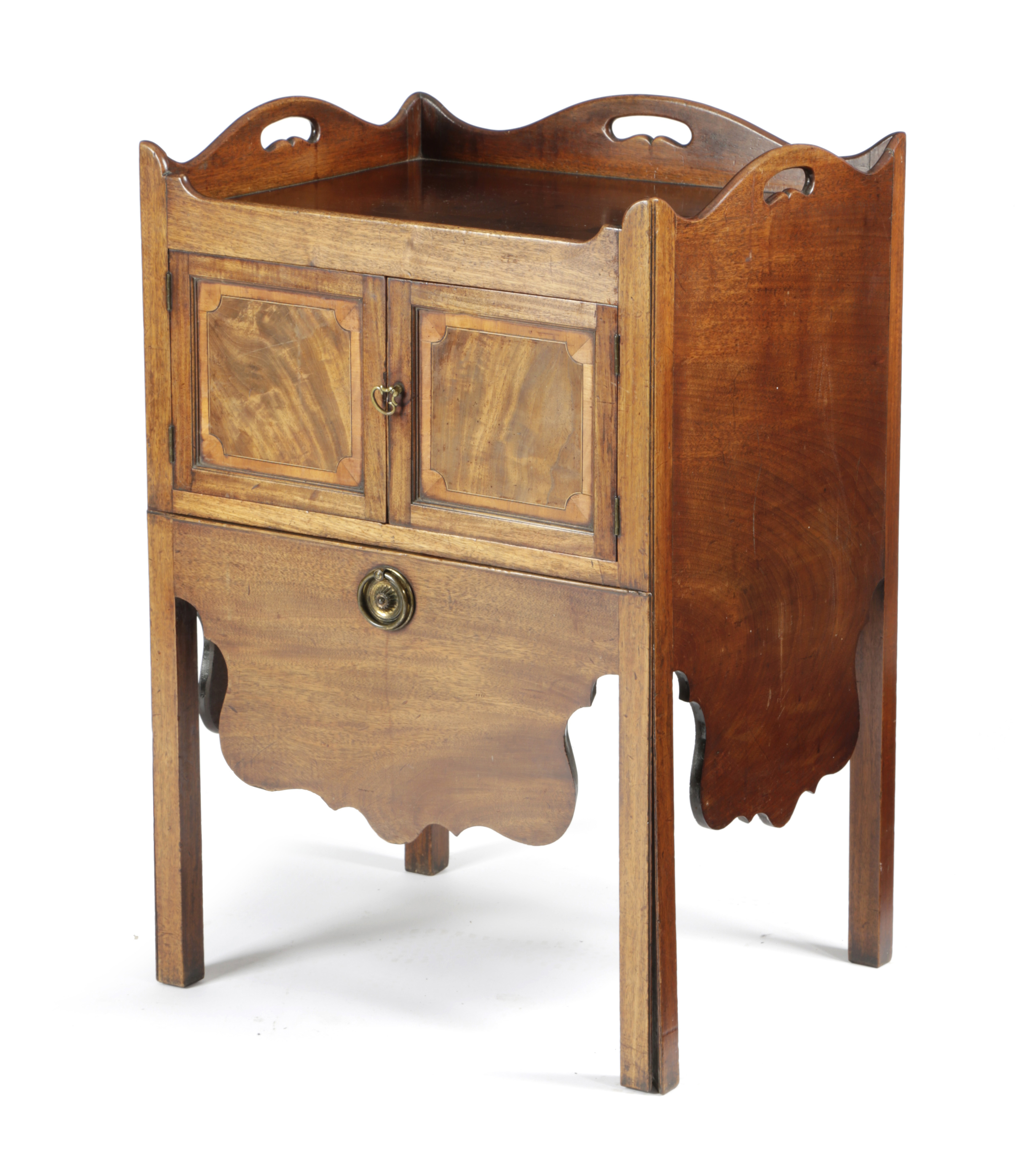 A GEORGE III MAHOGANY TRAY-TOP BEDSIDE COMMODE