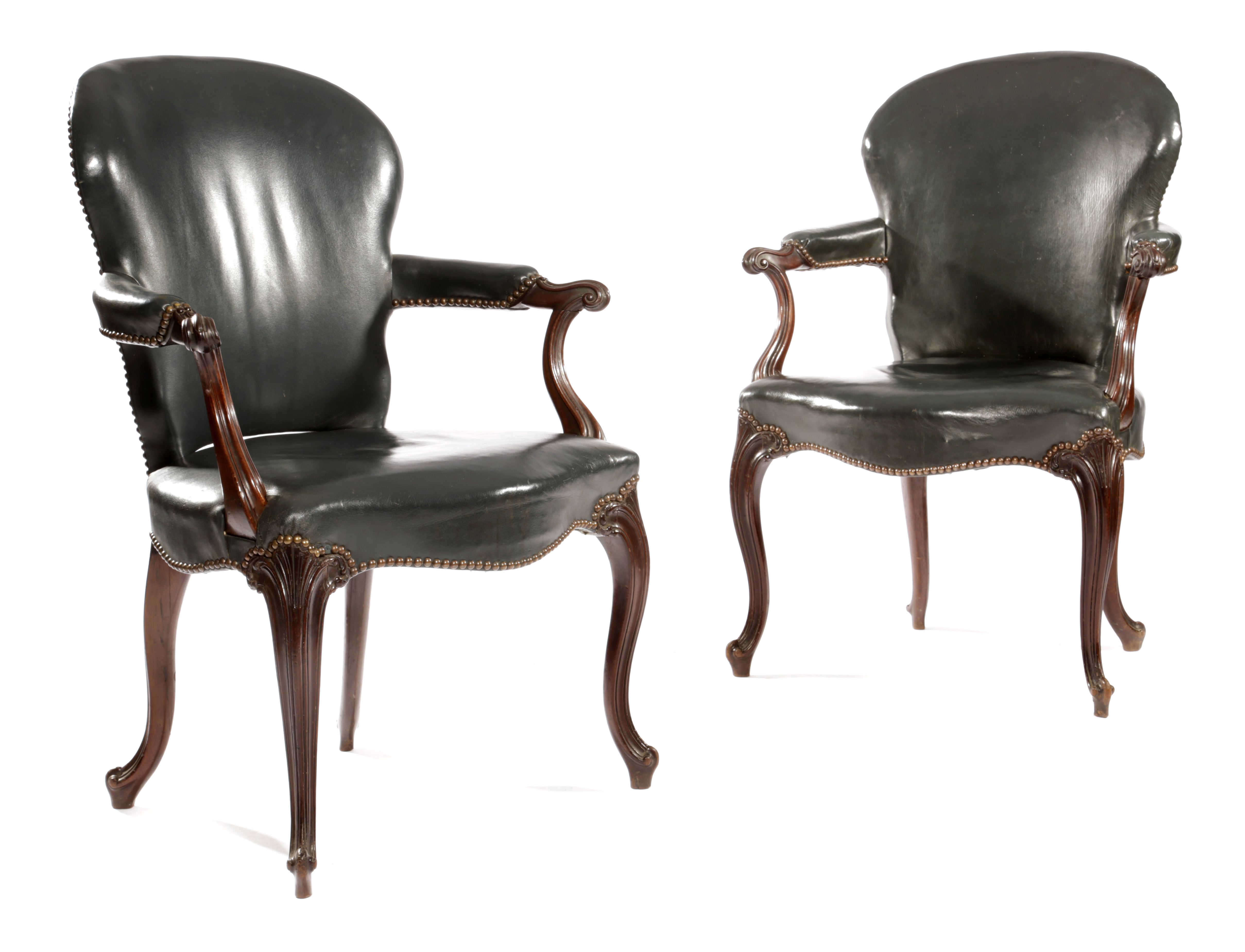 A PAIR OF GEORGE III MAHOGANY OPEN ARMCHAIRS