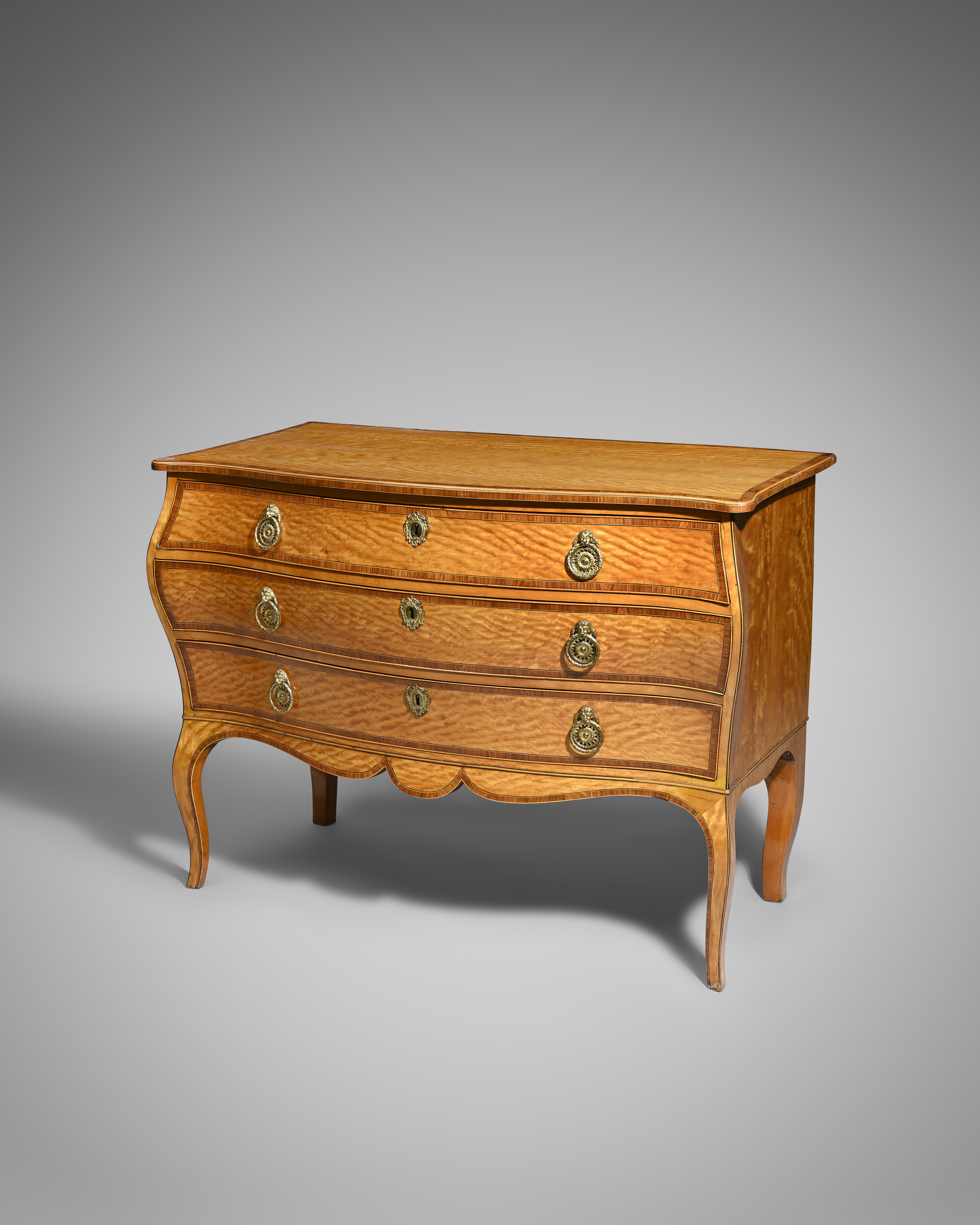 A GEORGE III SATINWOOD SERPENTINE COMMODE