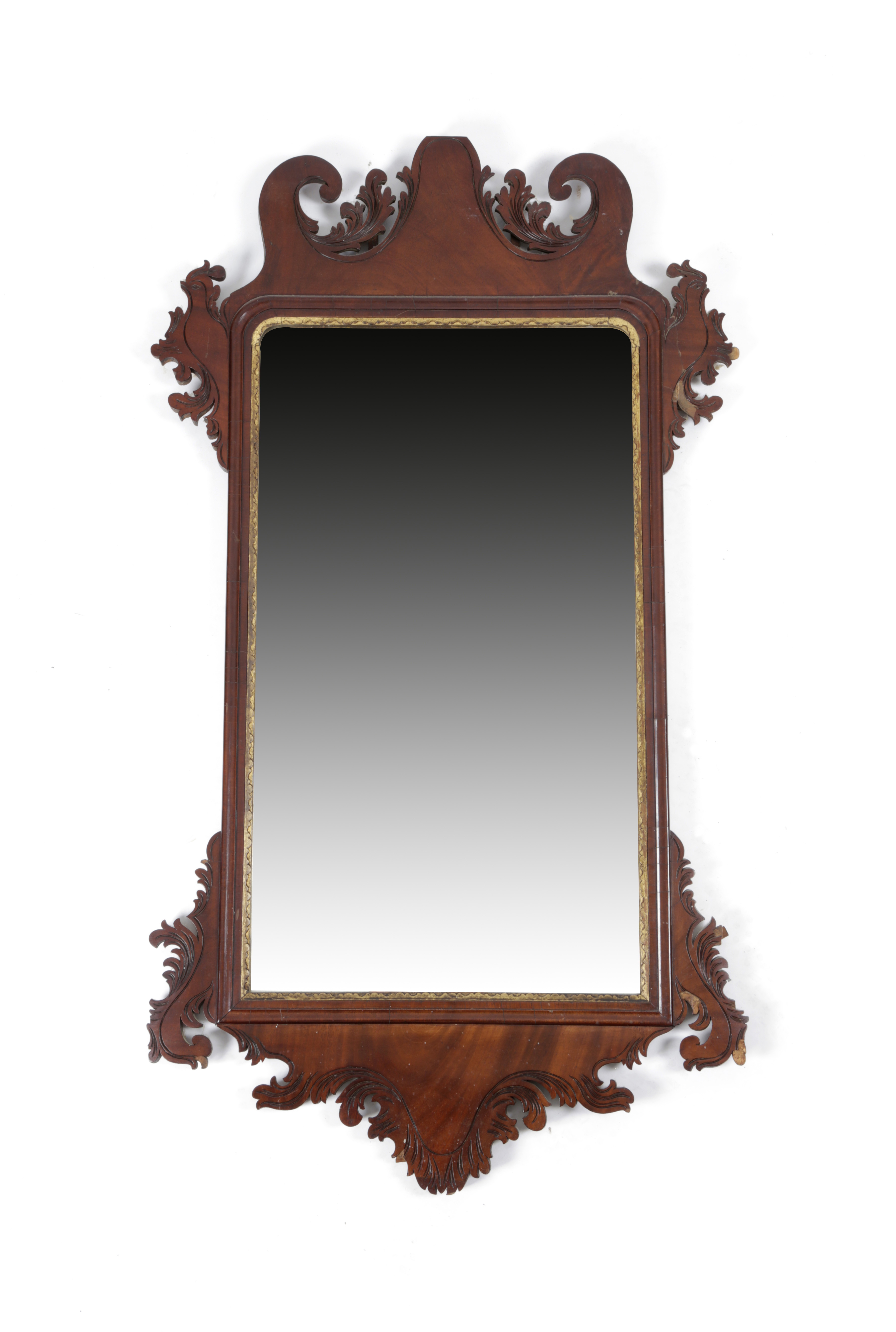 A GEORGE II MAHOGANY FRET-FRAME WALL MIRROR
