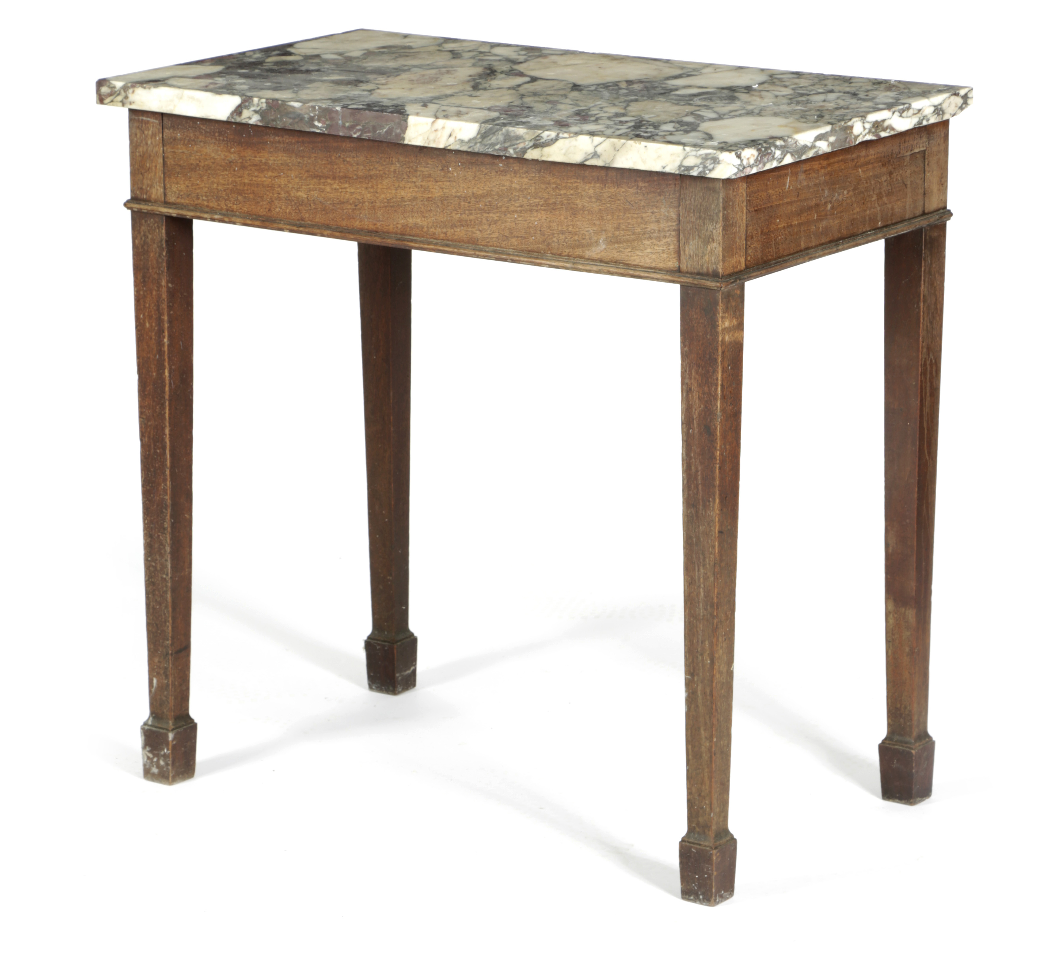 with a breche violet marble top, above a plain frieze, on square tapering legs and block feet