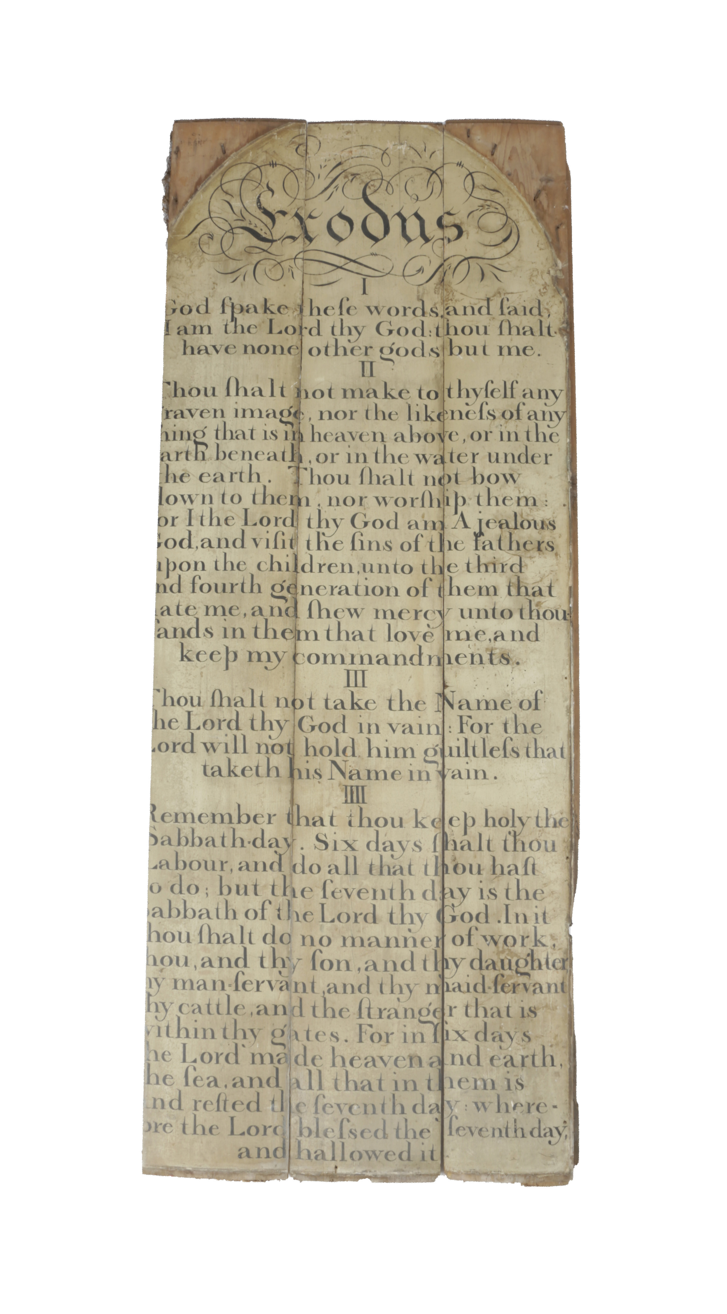 A GEORGE III PAINTED PINE PRAYER BOARD