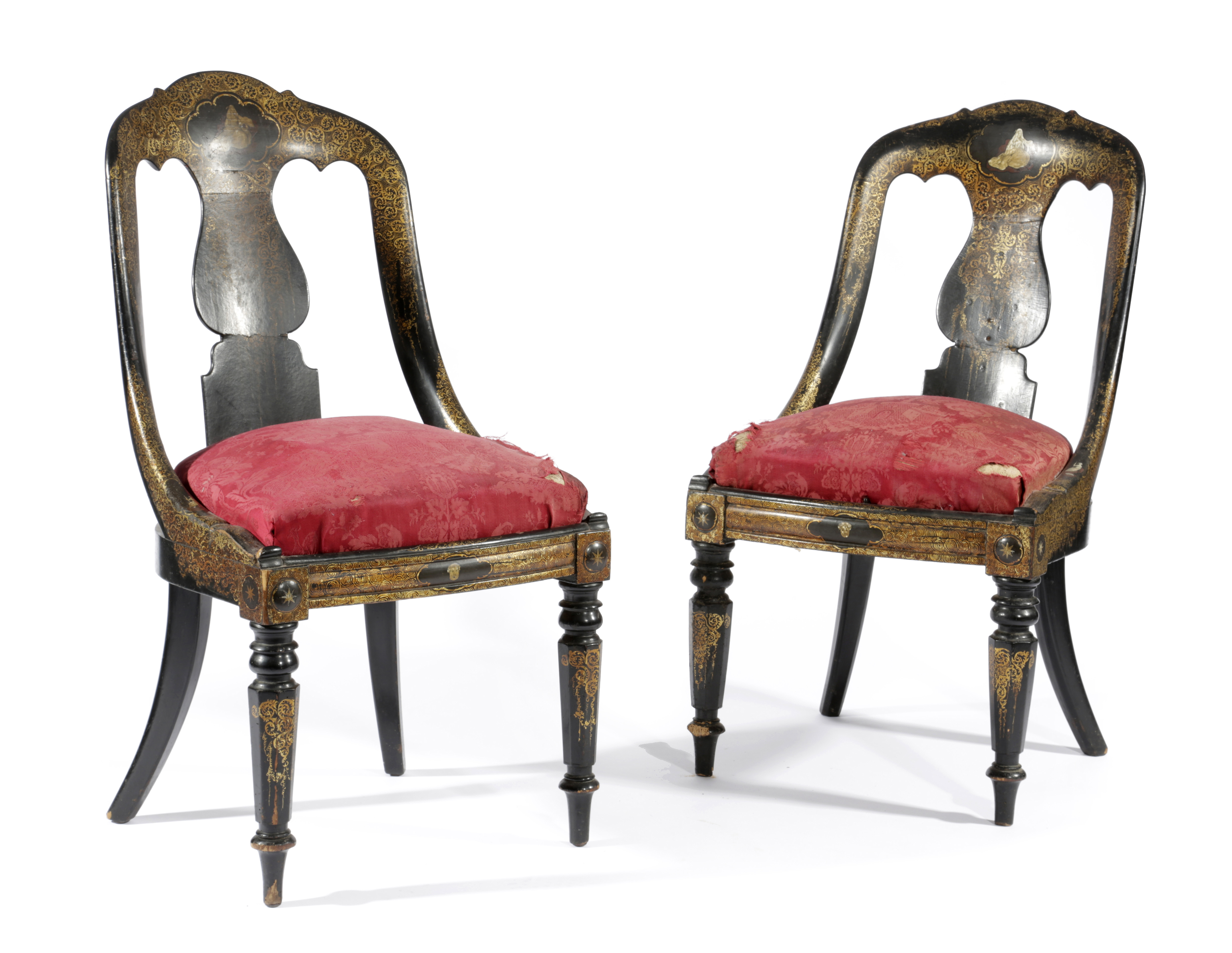 A PAIR OF EARLY VICTORIAN PAPIER-MACHE SIDE CHAIRS