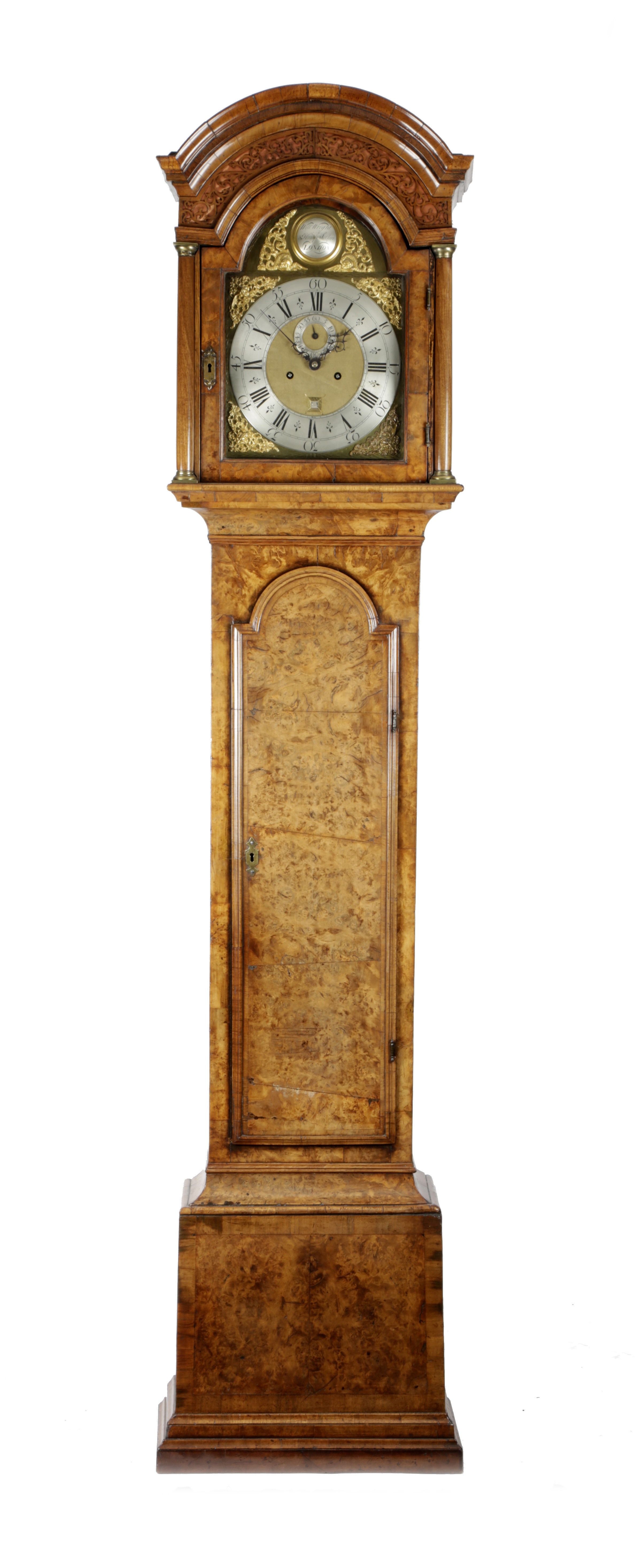 AN EARLY 18TH CENTURY BURR WALNUT LONGCASE CLOCK