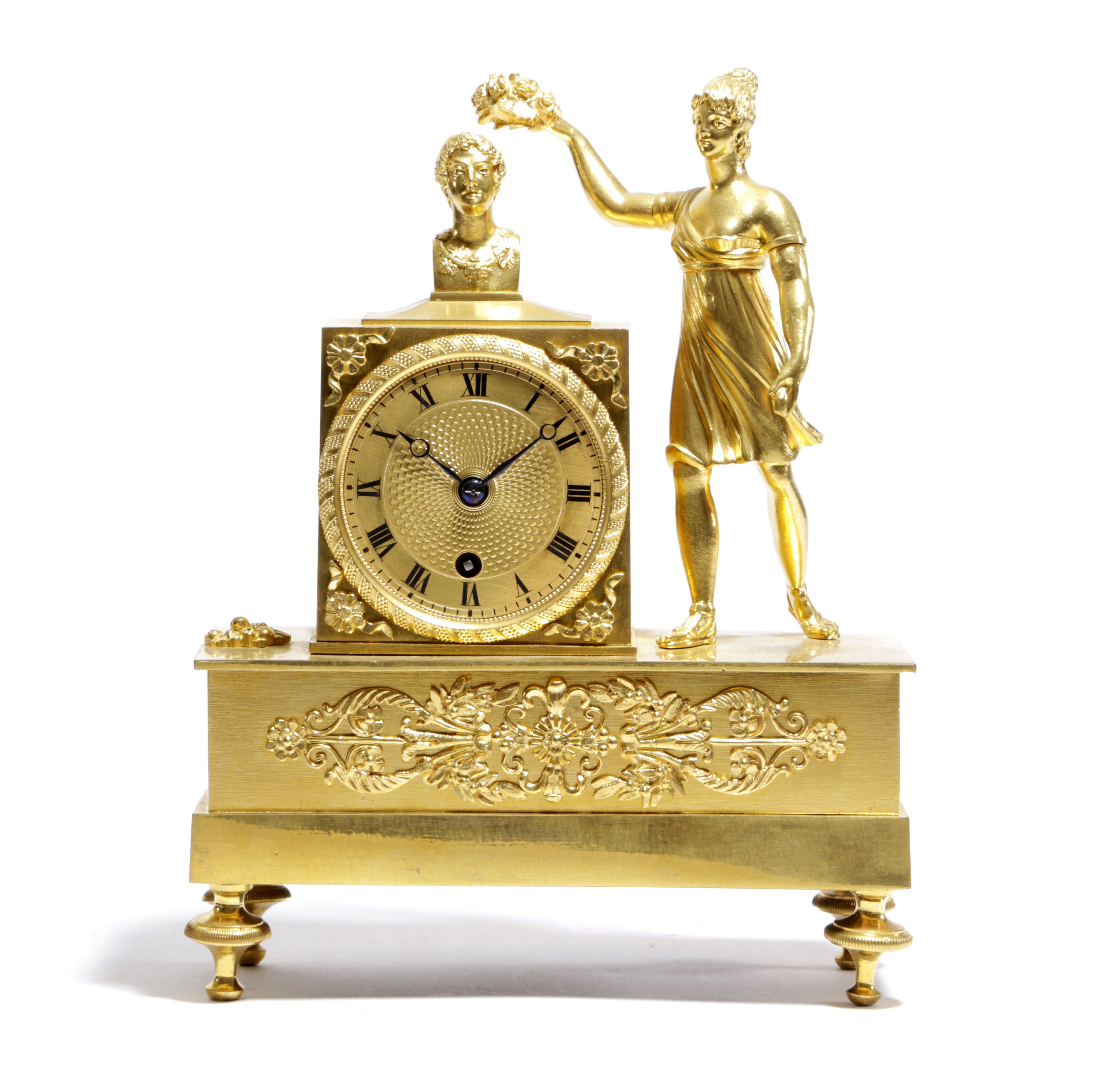 A FRENCH 'EMPIRE' ORMOLU MANTEL CLOCK