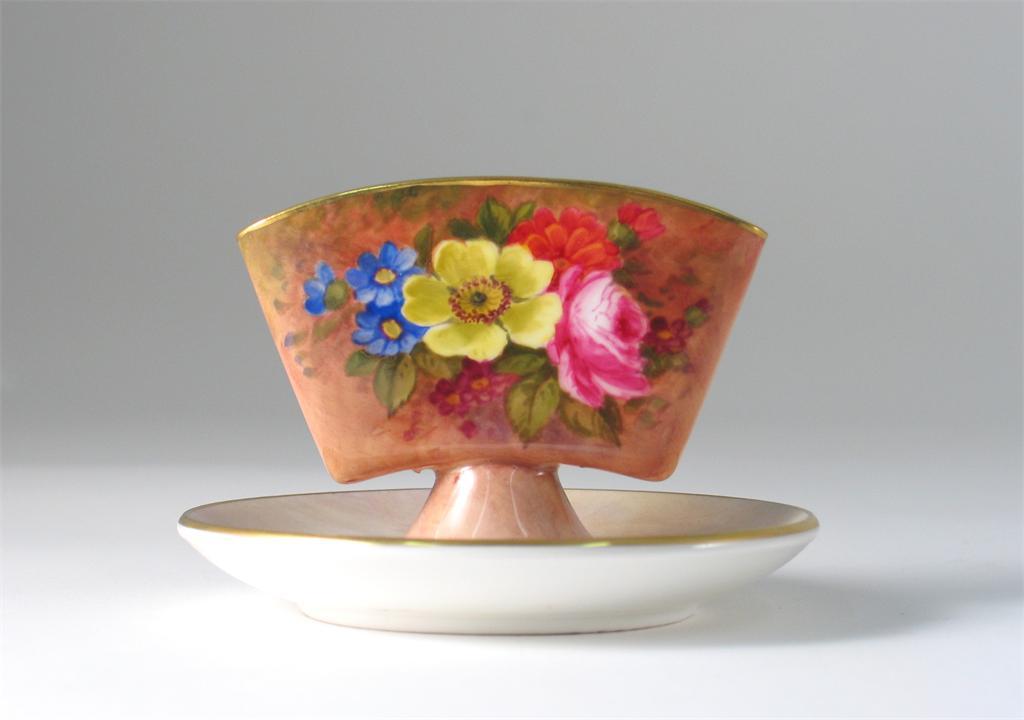 A Royal Worcester match holder, painted with colourful flowers, signed 'E. Barker', date code for 1936, 9.5cm.