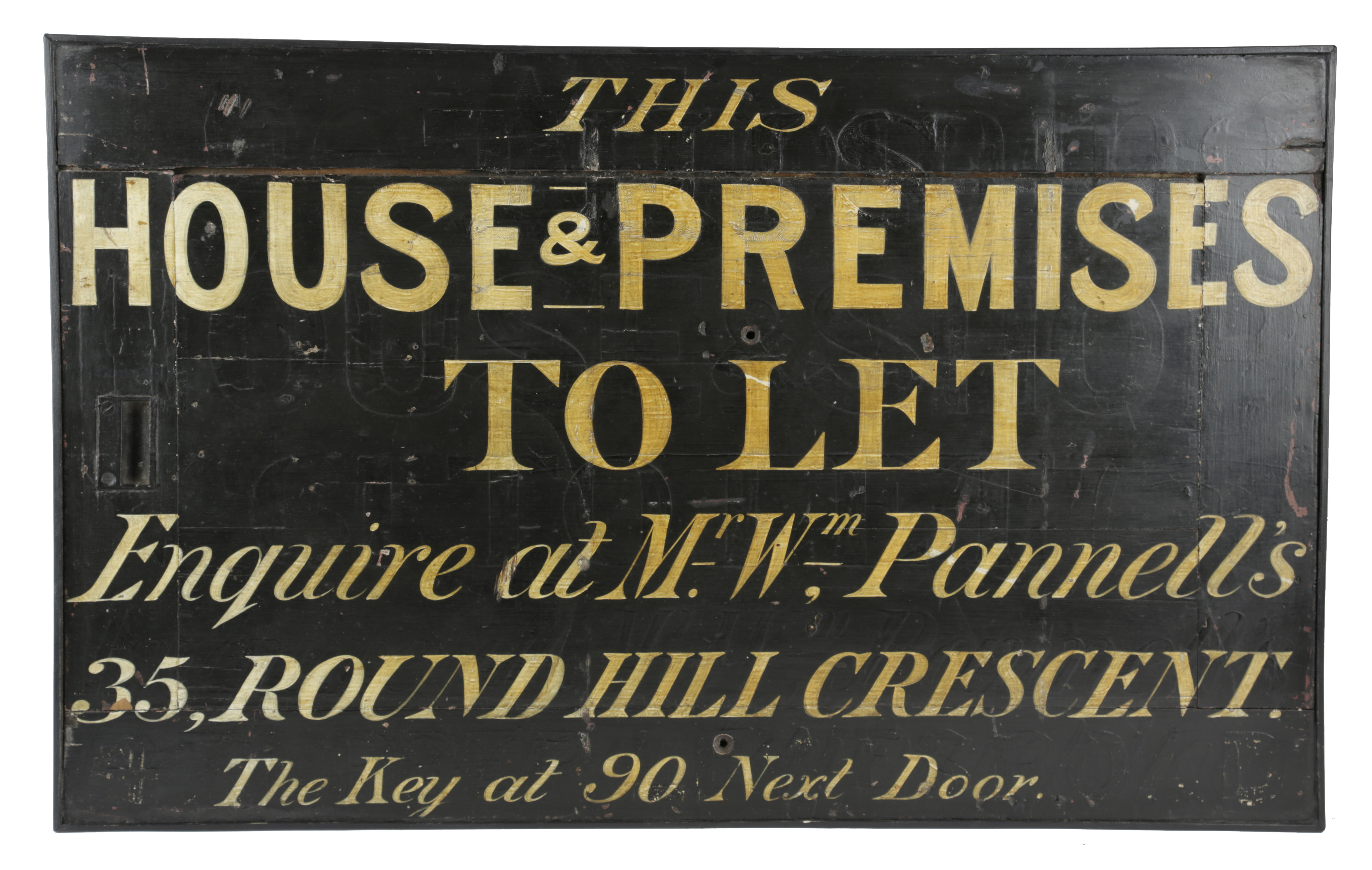 inscribed 'This House & Premises To Let. Enquire at Mr Wm Pannell's. 35, Round Hill Crescent, The Key at 90 Next Door'