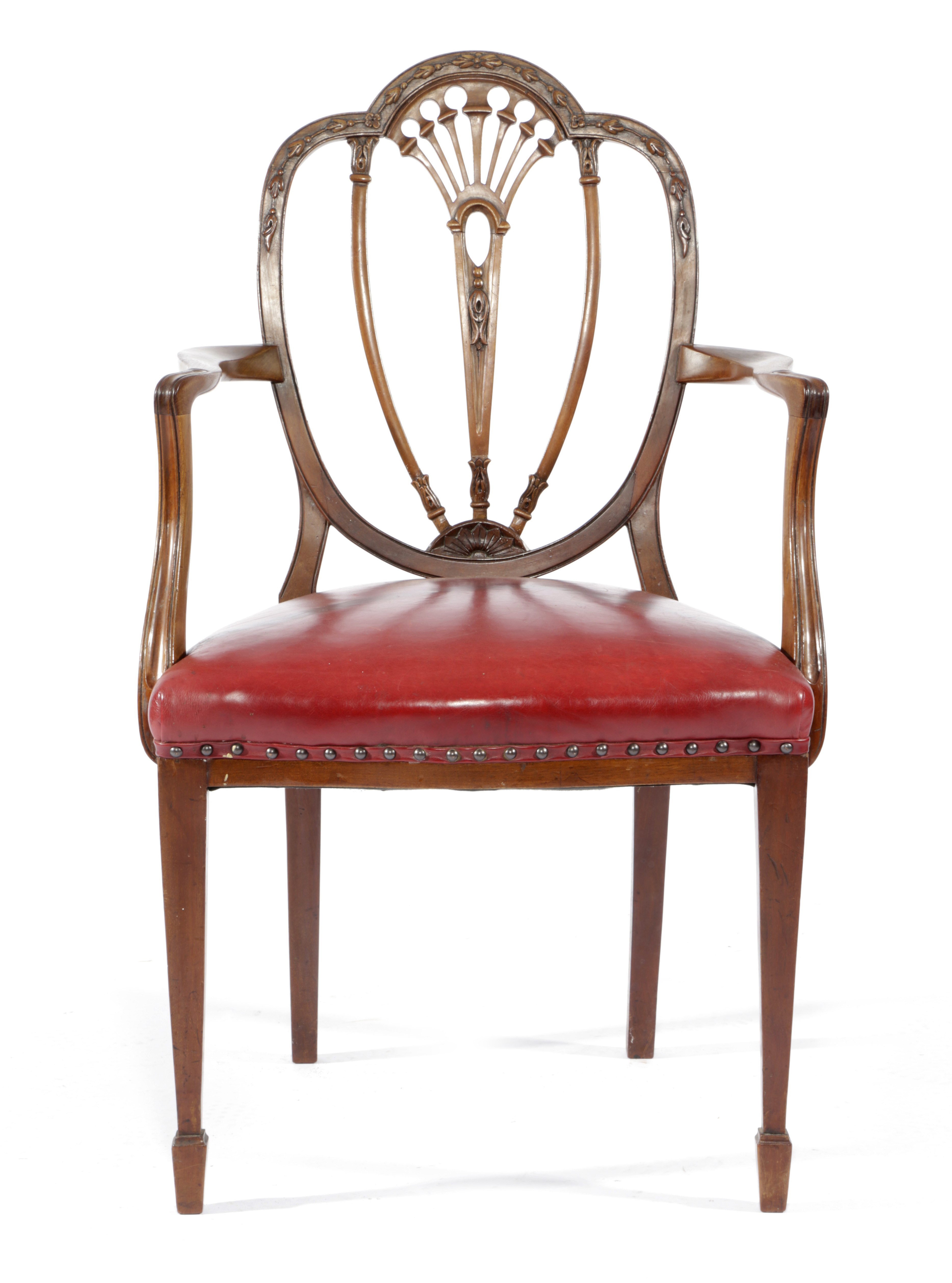A MAHOGANY OPEN ARMCHAIR IN GEORGE III STYLE