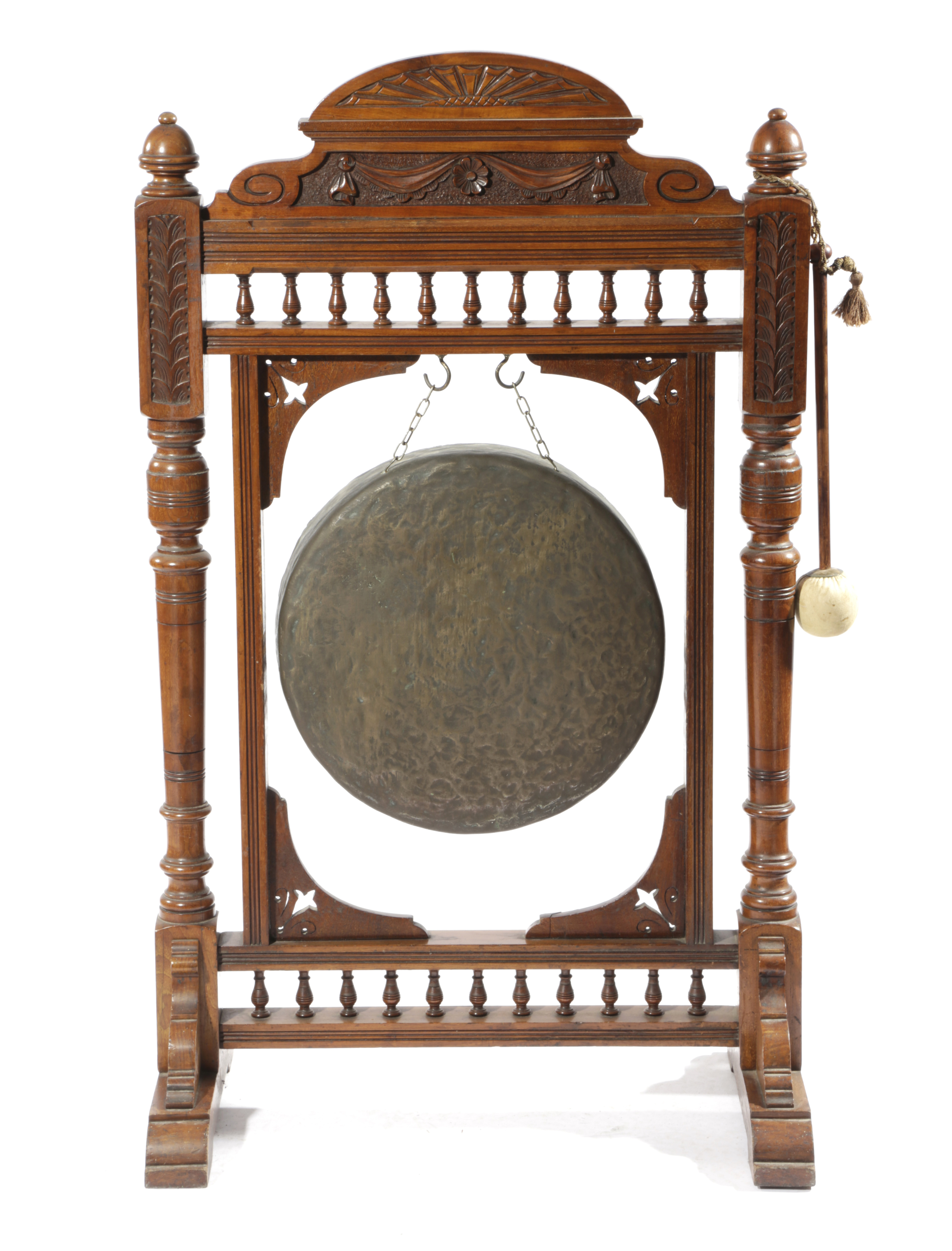 A LATE VICTORIAN WALNUT COUNTRY HOUSE GONG