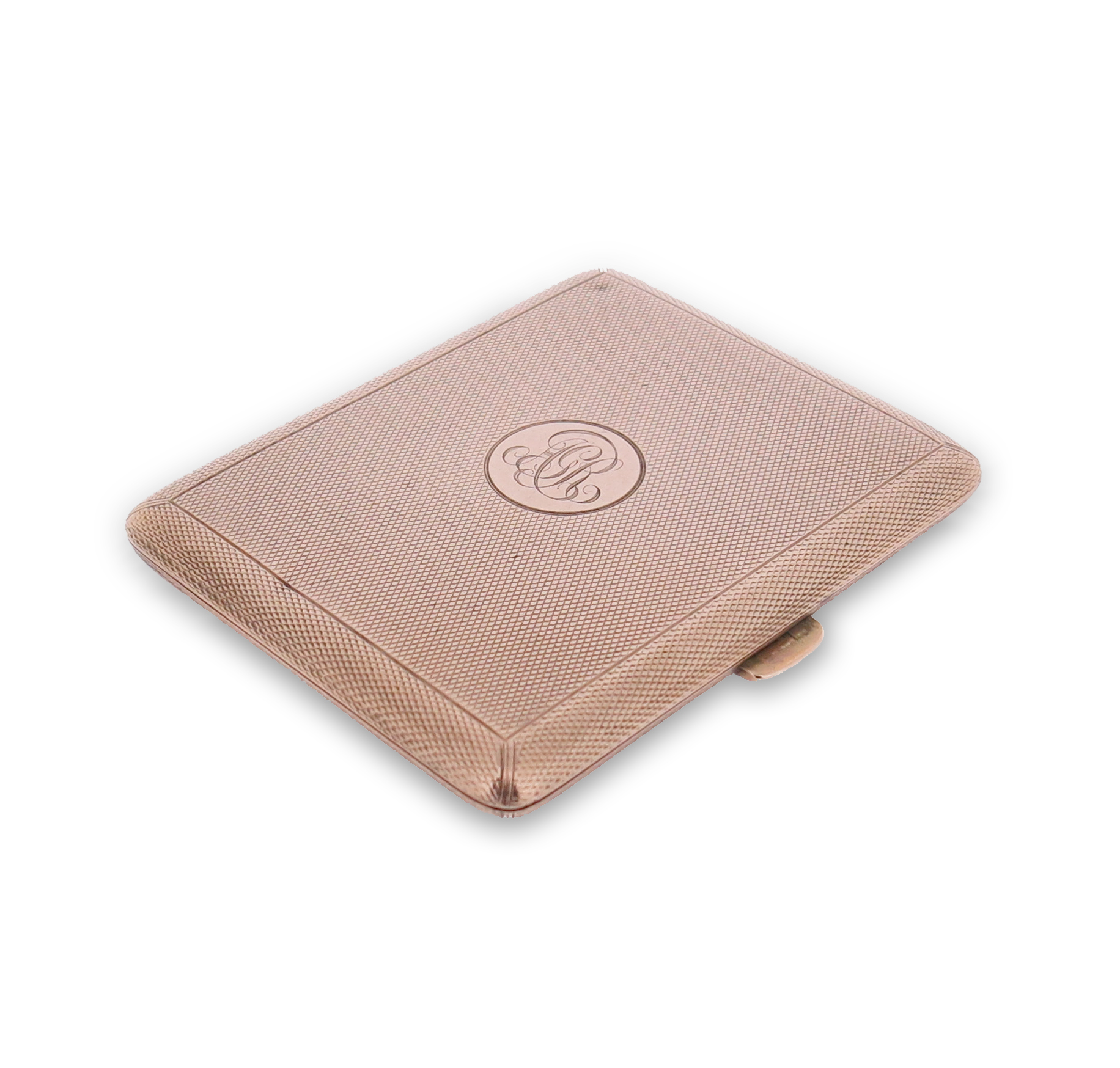 A 9ct gold engine-turned cigarette case, with engine-turned decoration overall and monogram AGR, 9ct hallmarks, maker's mark, 8cm wide, 76g