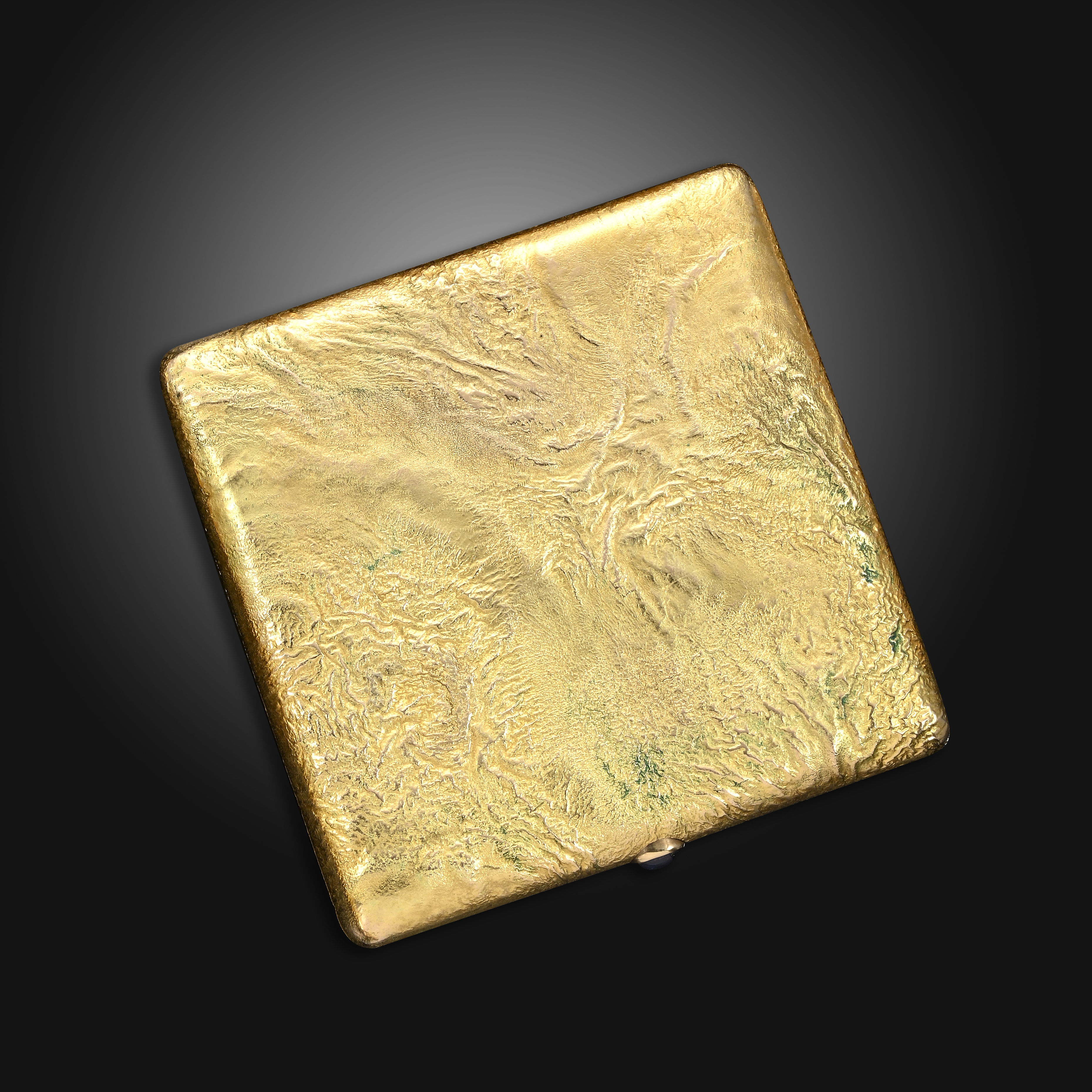 A 9ct yellow gold samorodok-style square-form cigarette case