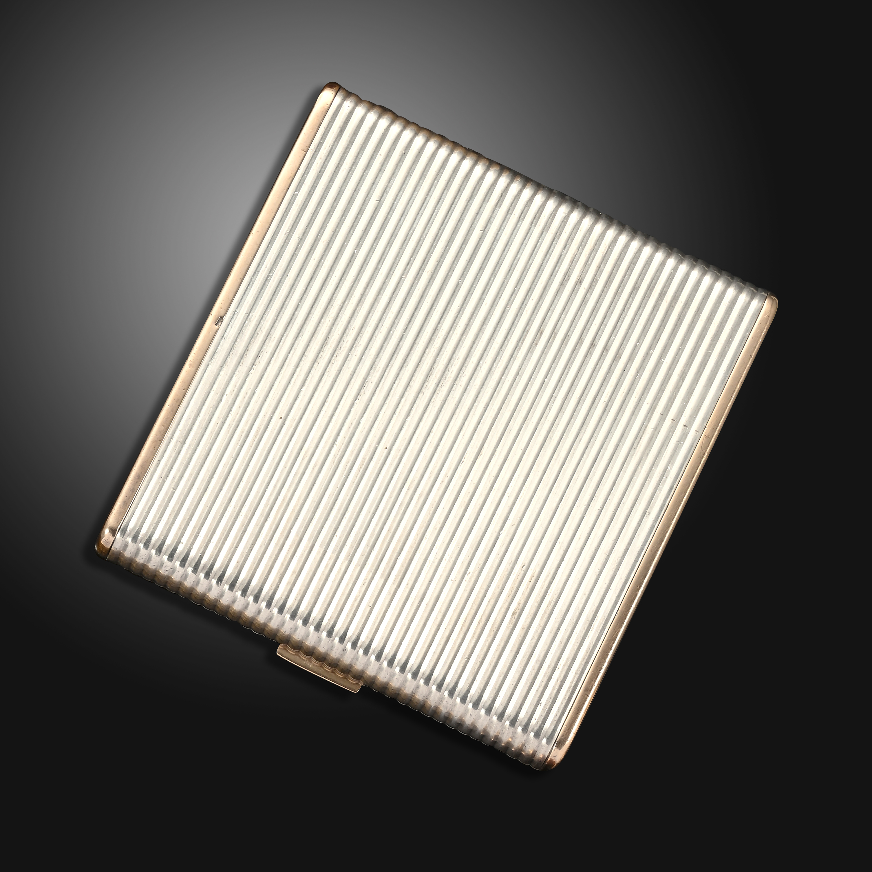 A silver and gold cigarette case by Sterlé, of rectangular silver nibbed form, with plain gold edges and thumbpiece, the interior signed 'Sterlé Paris' and numbered '2637', French control marks, maker's lozenge, stamped 'Argent', 8.7 x 8.1cm, 140g