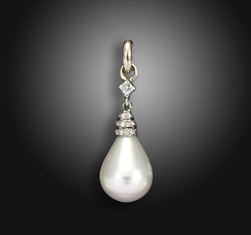 Accompanied by report number 318663 dated 5 July 2016 from The Laboratoire Francais de Gemmologie, stating that the white-cream half-drilled drop-shaped pearl measures 9.5 - 9.5 x 12.5mm approximately and is natural saltwater.