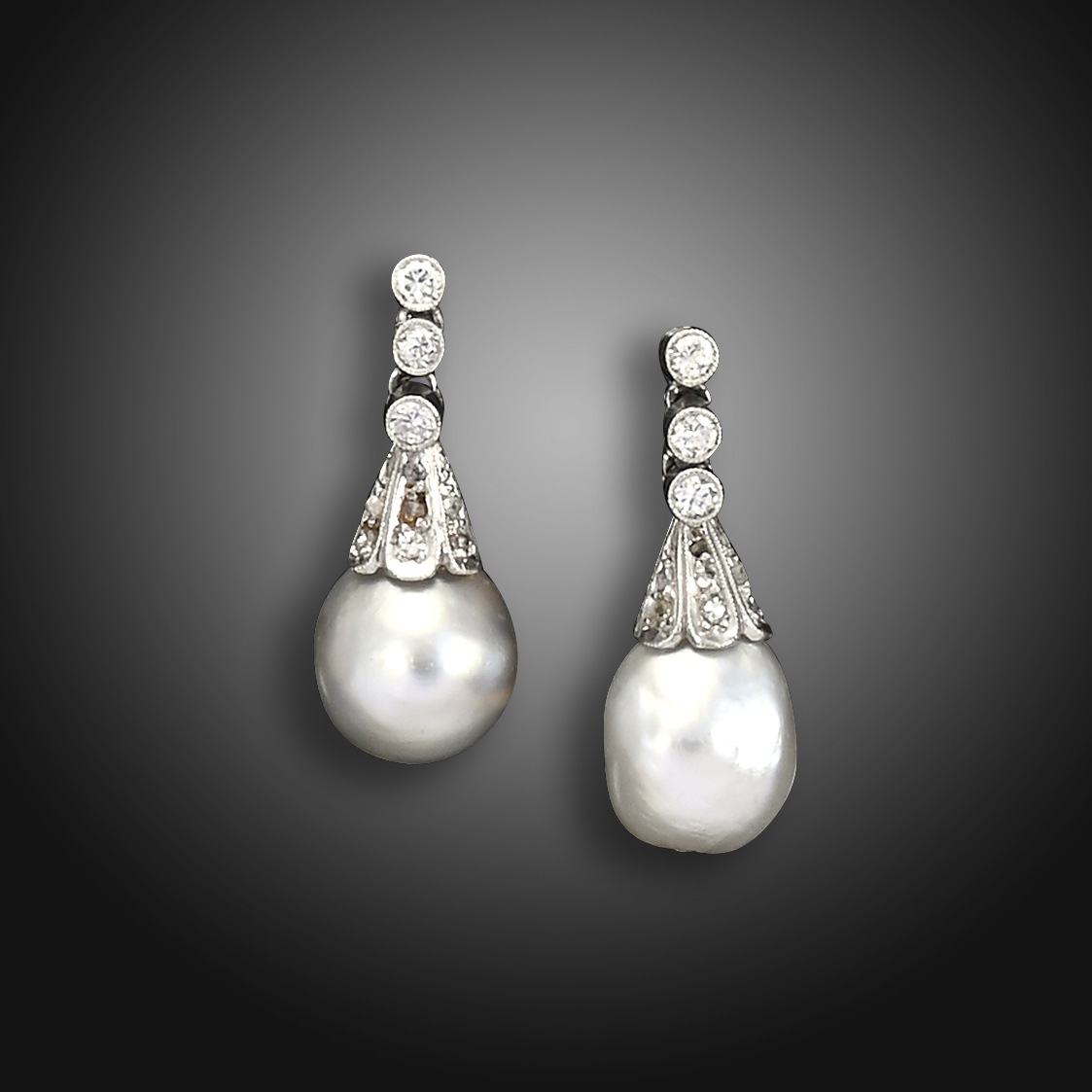 A pair of early 20th century natural pearl and diamond drop earrings