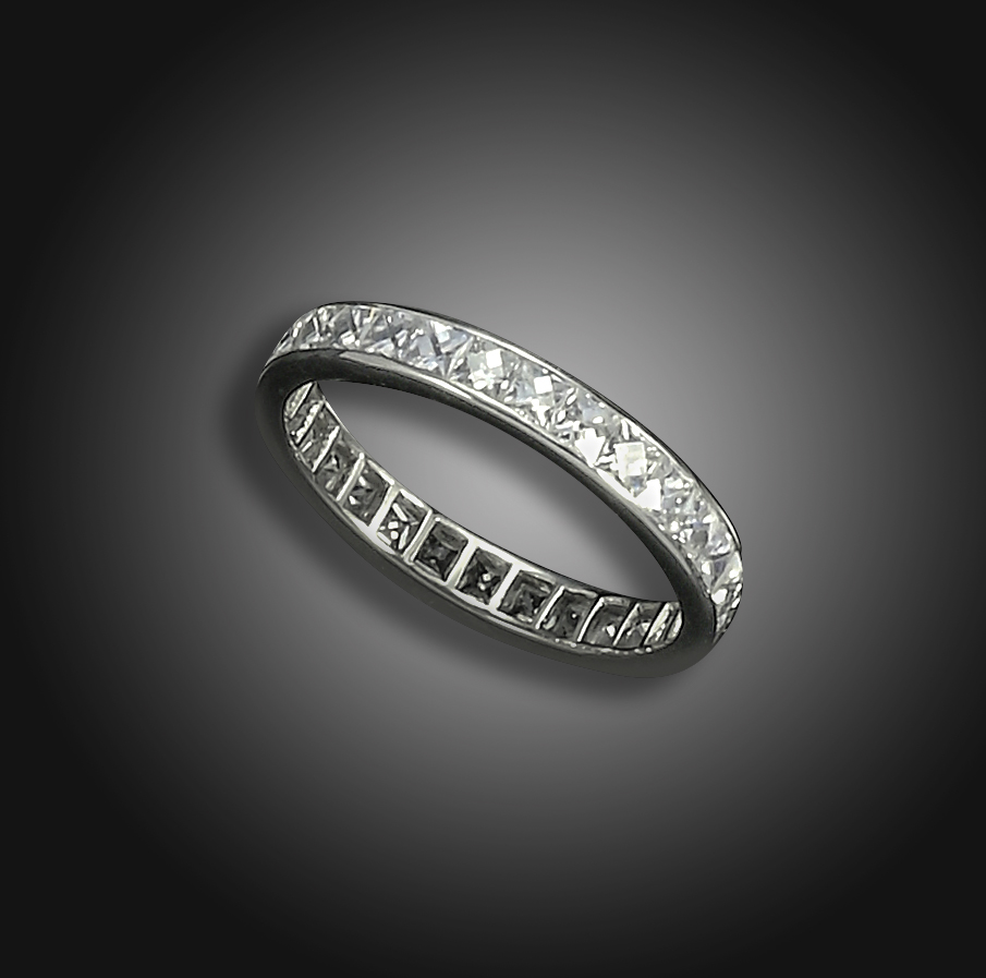 A diamond full circle eternity ring, channel-set with French-cut diamonds in platinum, size P