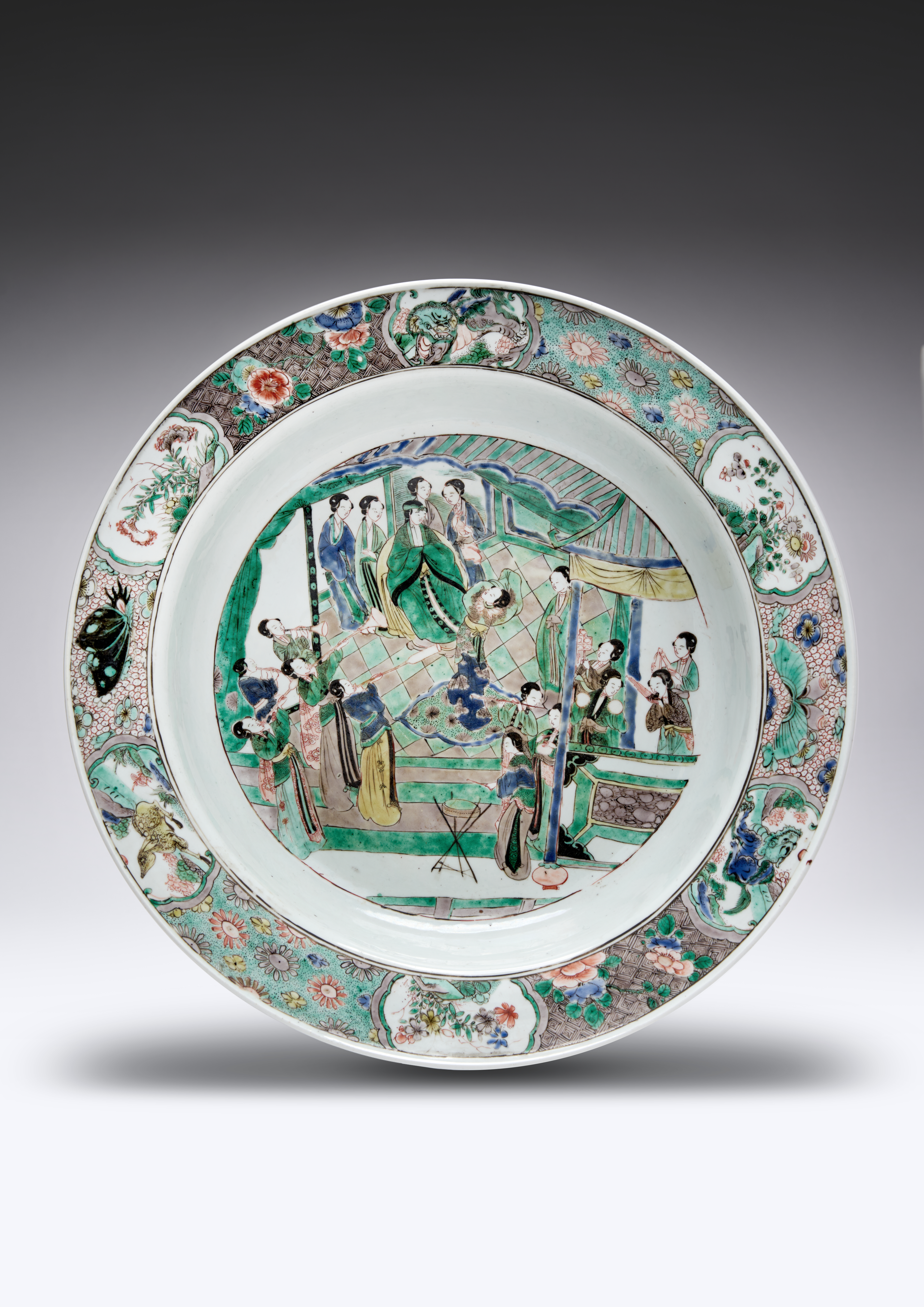 A FINE CHINESE FAMILLE VERTE 'LADIES' BASIN