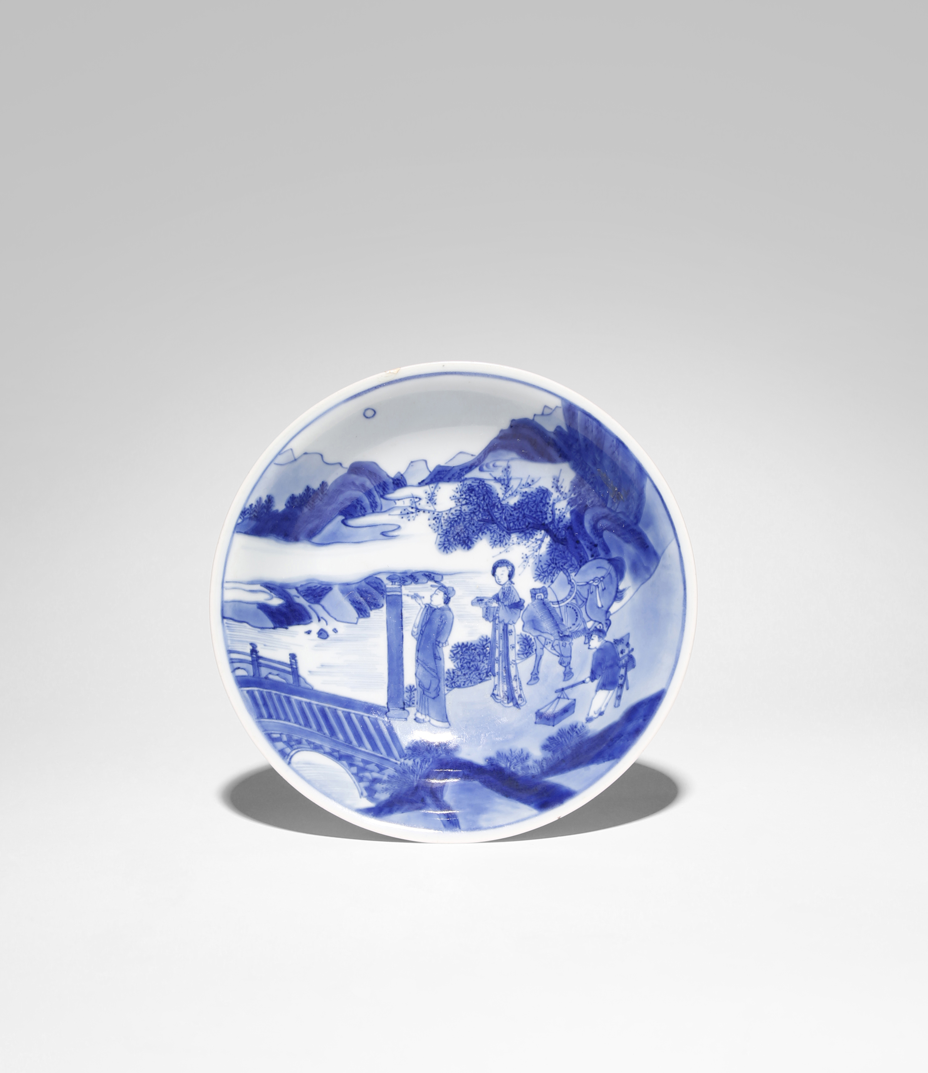 Cf. Kangxi Porcelain Wares from the Shanghai Museum Collection, pp.64-65, no.43 for a related blue and white dish with the same mark; see also J P Stamen and C Volk, A Culture Revealed: Kangxi-Era Chinese Porcelain from the Jie Rui Tang Collection, pp.84-85, no.25 for a similar Kangxi mark and period dish; see also Sotheby's London, 15th May 2019, lot 138 for a famille verte dish painted with the same scene.