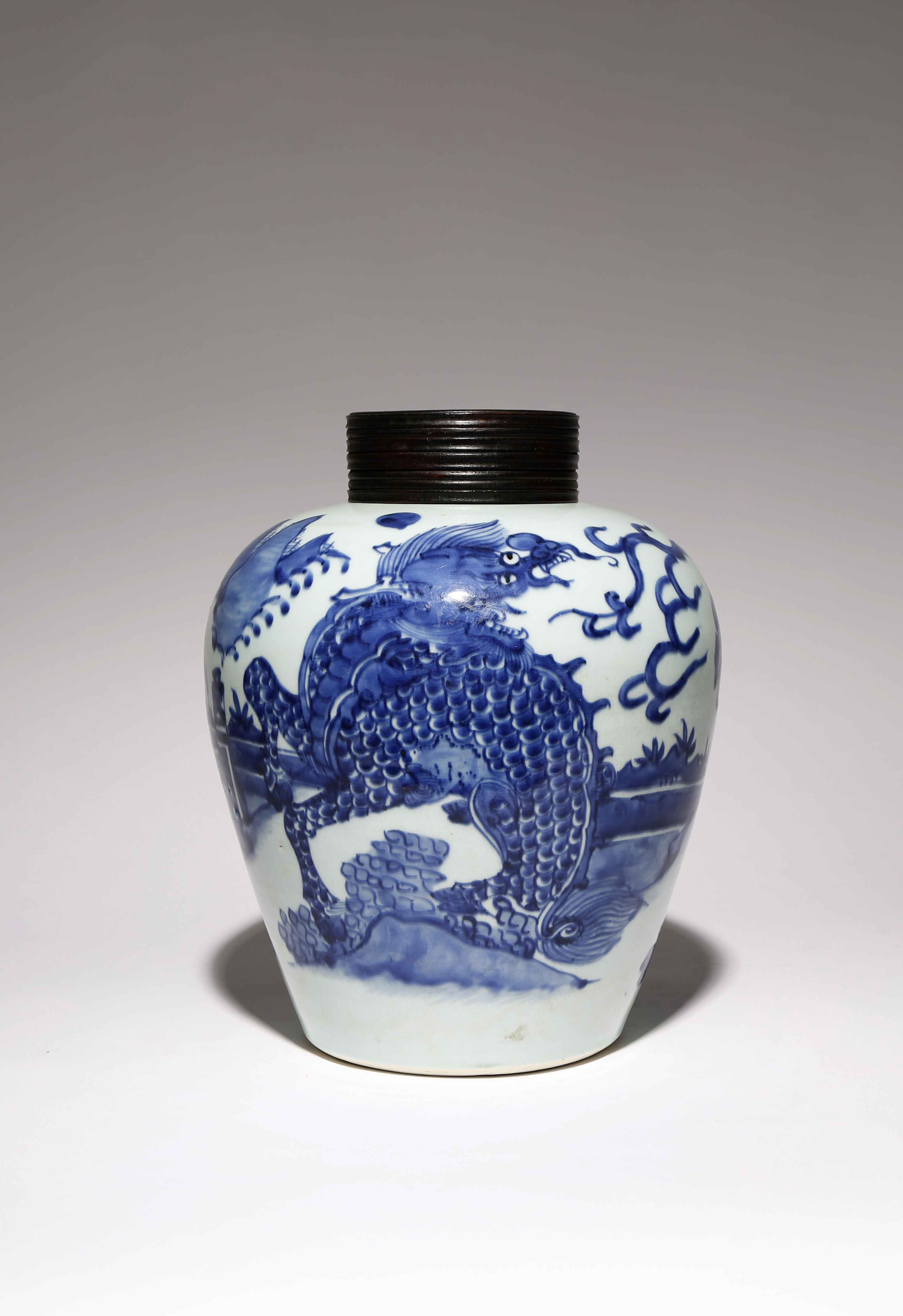 A CHINESE BLUE AND WHITE OVOID 'QILIN' VASE