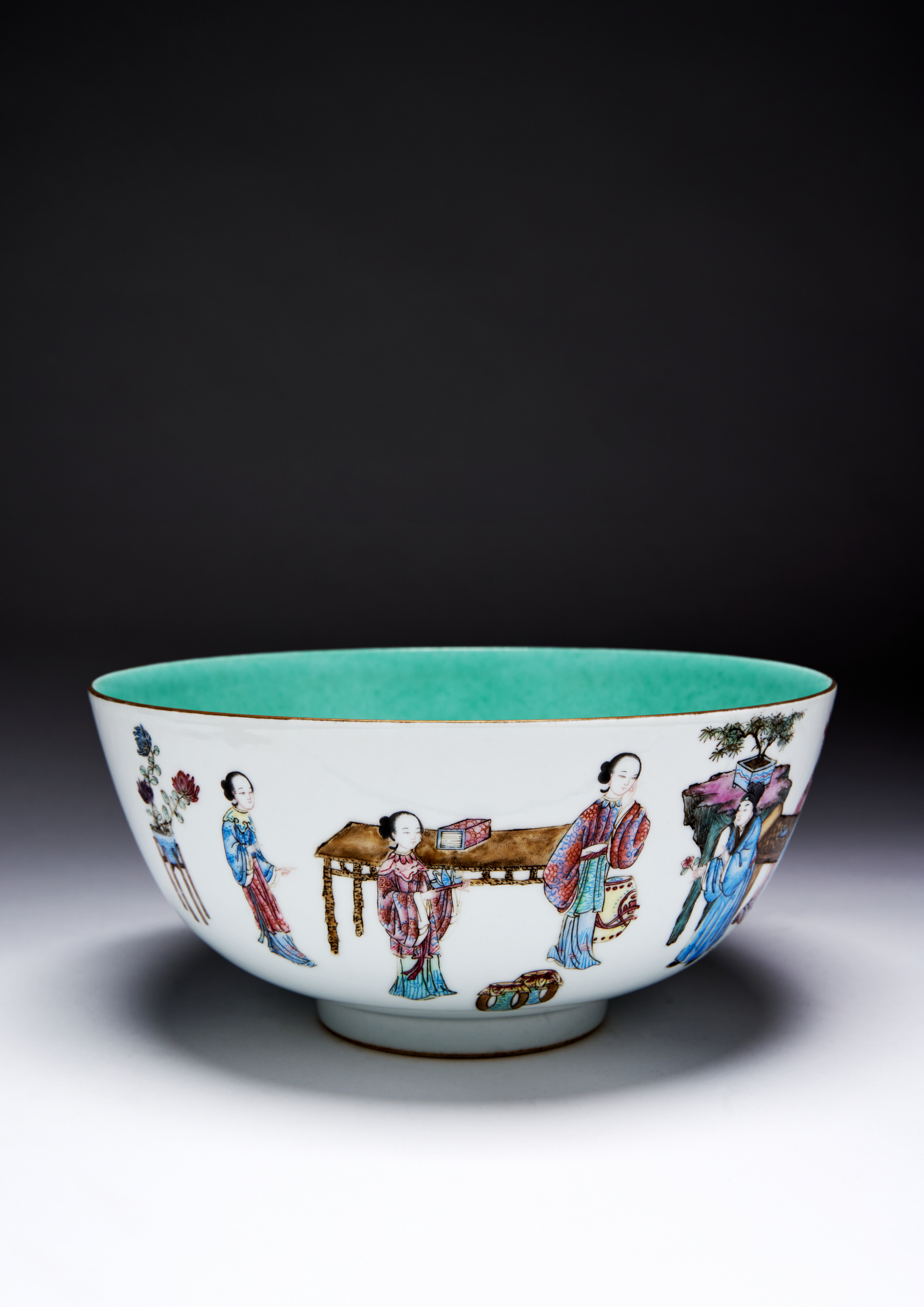 A FINE CHINESE IMPERIAL FAMILLE ROSE 'LADIES' BOWL