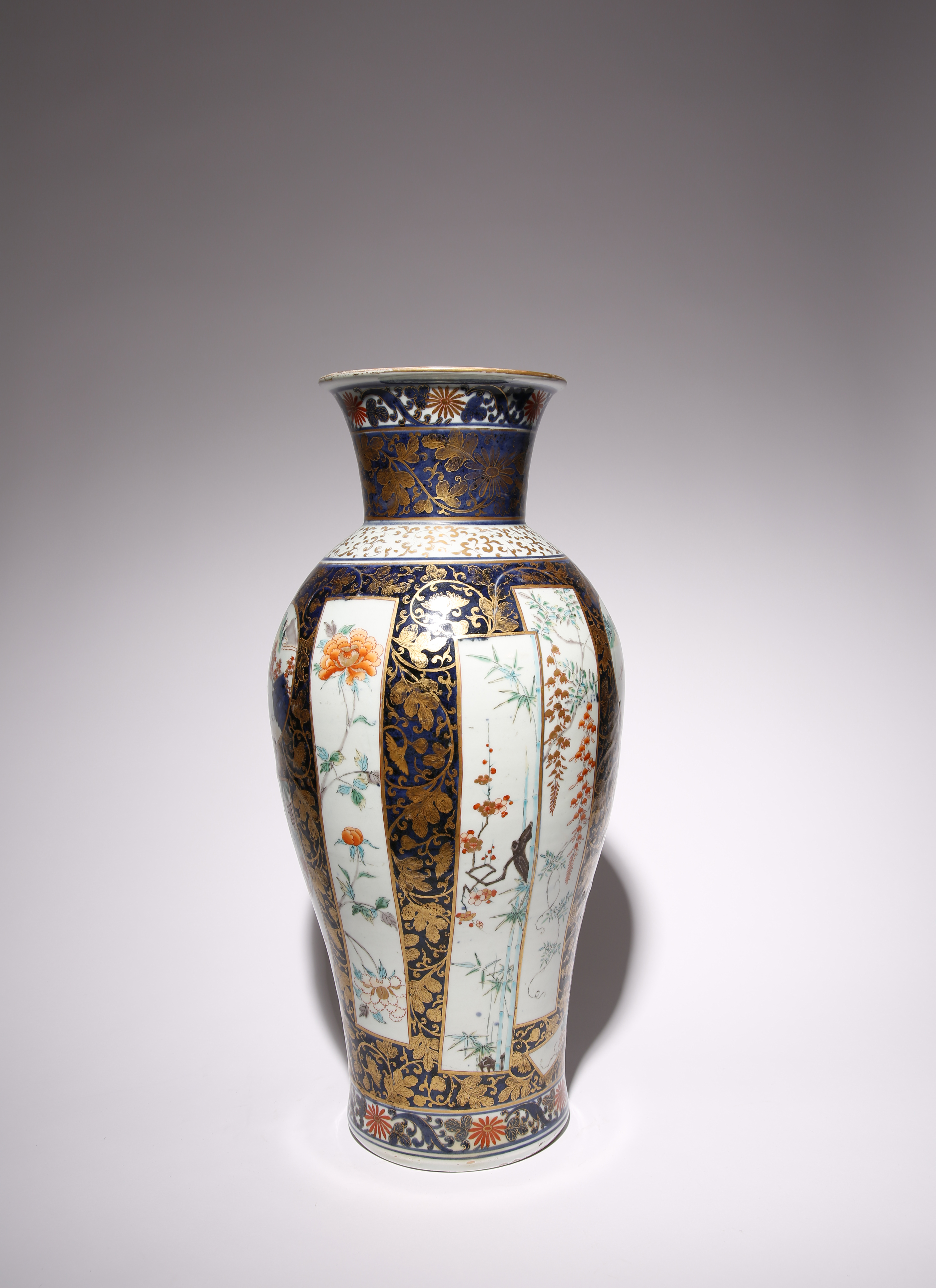 Cf. Spink & Son, Far Eastern Art at Spink, Summer 1994, p. 57, no.64, for a related baluster vase from the Genroku Era. The authors explain that the ribbon-shaped cartouches imitate the decorative strips of paper known as tanzaku on which one would write a wish during the Tanabata festival.
