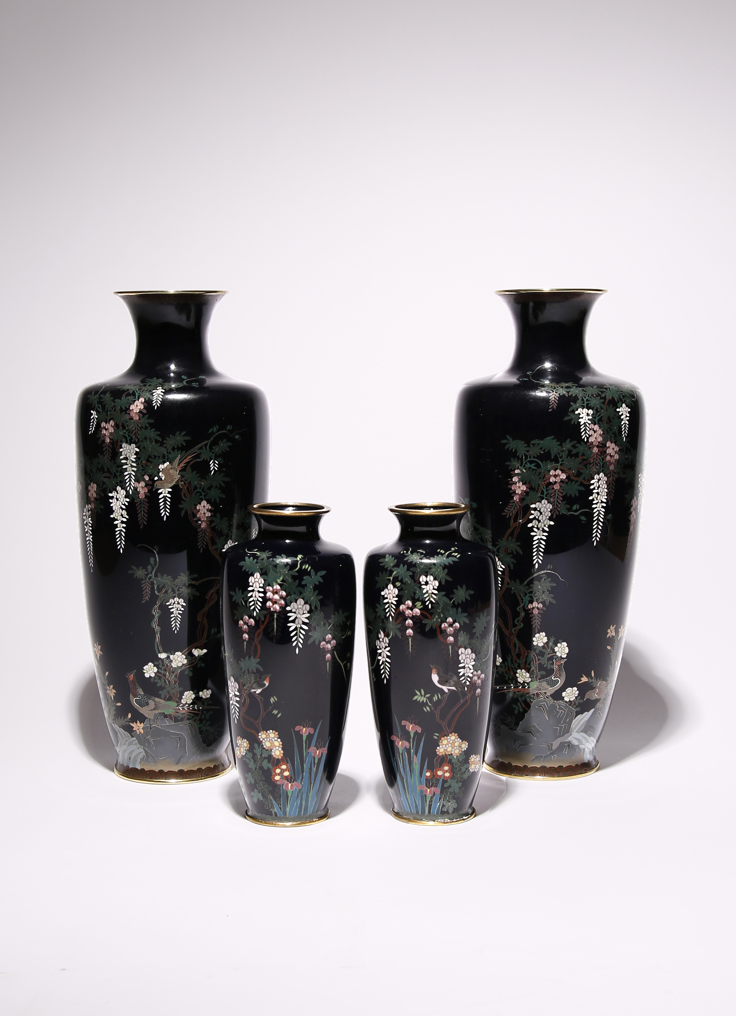 TWO PAIRS OF JAPANESE CLOISONNE VASES