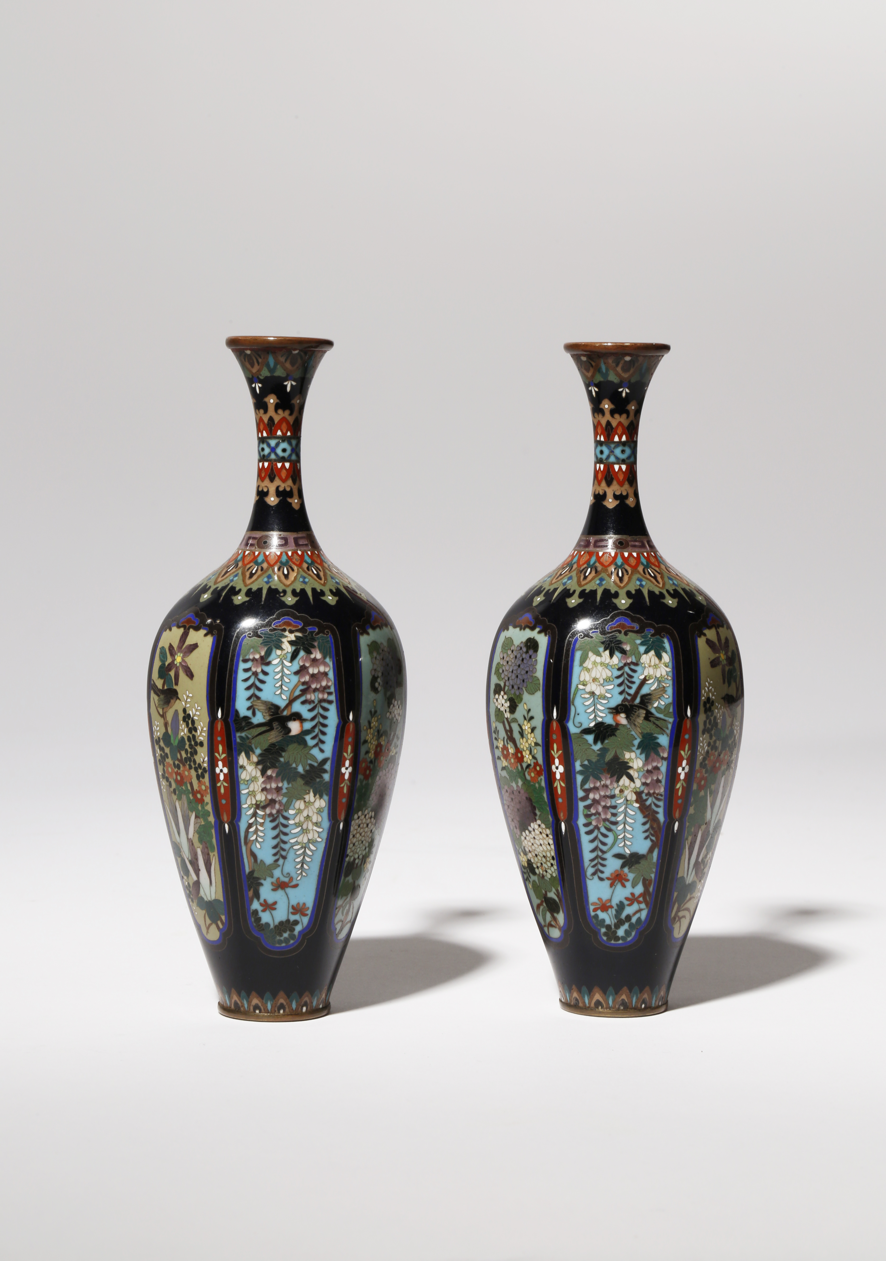A PAIR OF JAPANESE CLOISONNE VASES BY OTA KICHISABURO