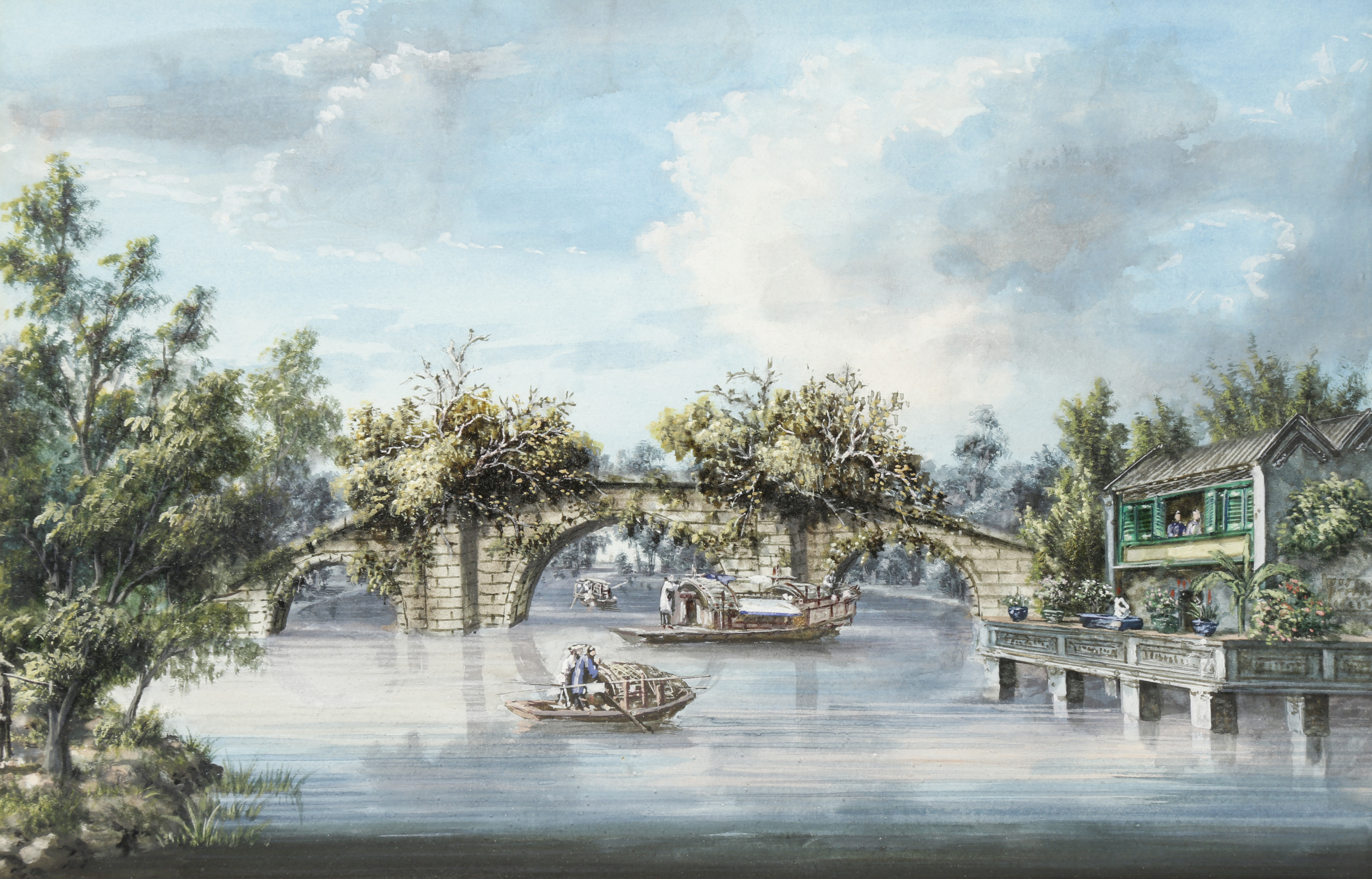 Two Chinese paintings, ink and colour on paper, contained together in one frame and glazed, the reverse of the frame with an inscription and a paper label which reads 'from T Richardson & Co, Dealers in Works of Art, Printsellers and Publishers, 43 Piccadilly, London, W, (Six doors East of Royal Academy)', each 12.5cm x 19cm.