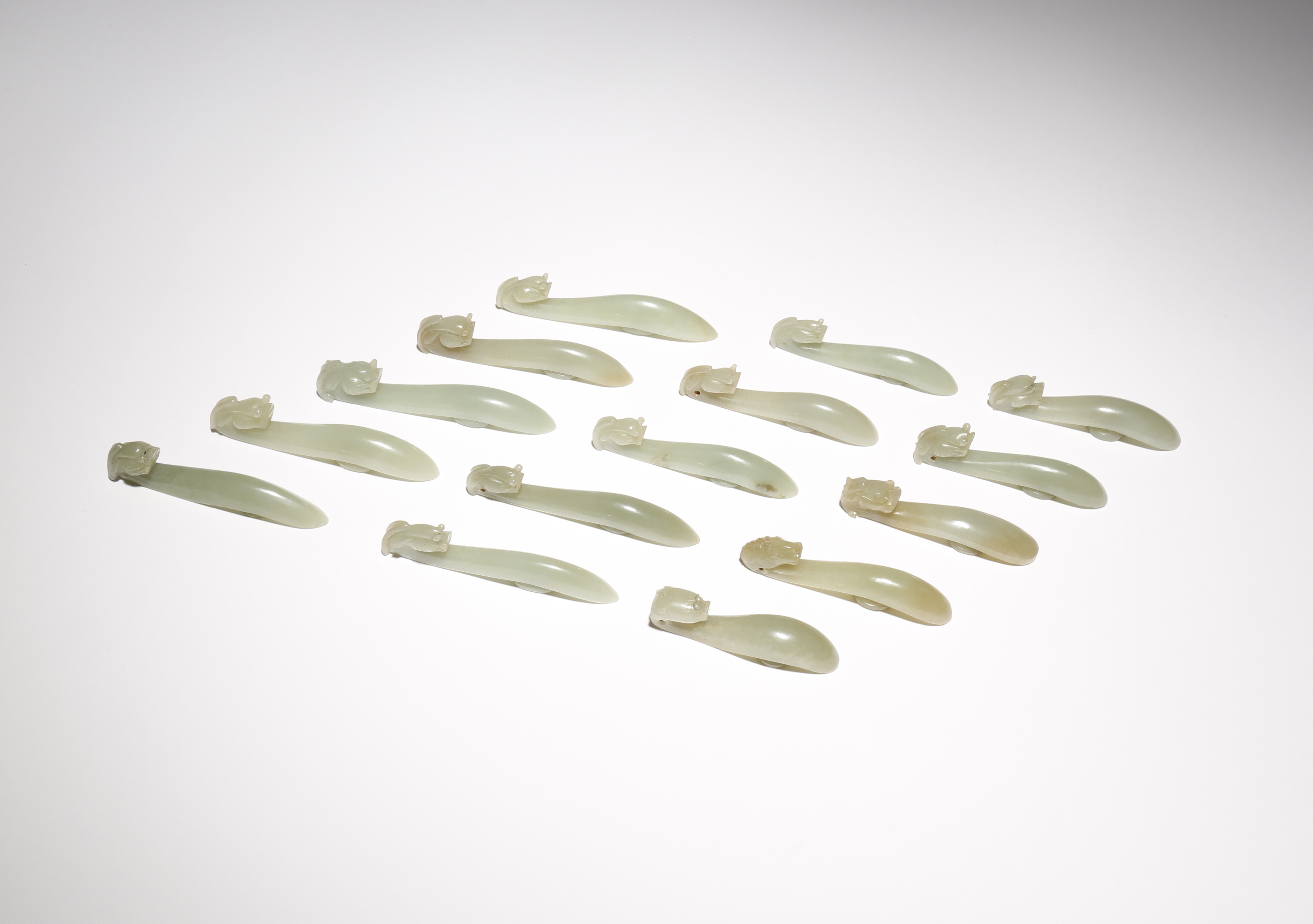 A GROUP OF FIFTEEN CHINESE CELADON JADE BELTHOOKS