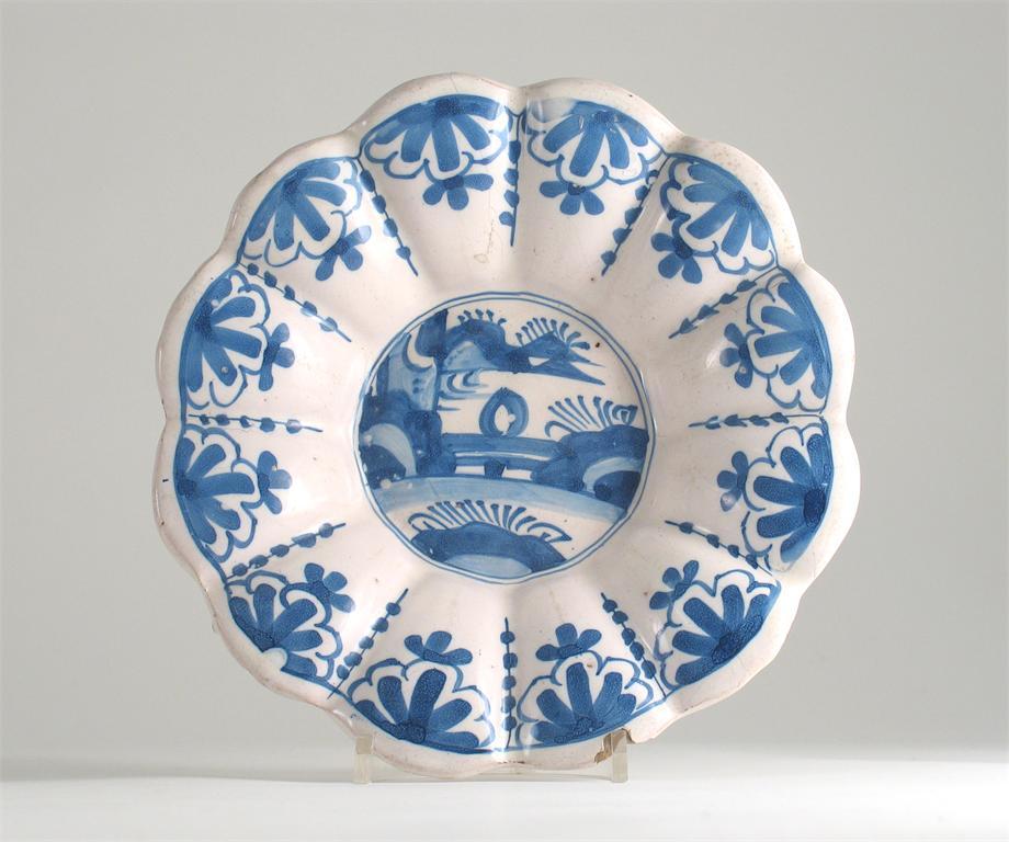 A Delft blue and white fluted plate
