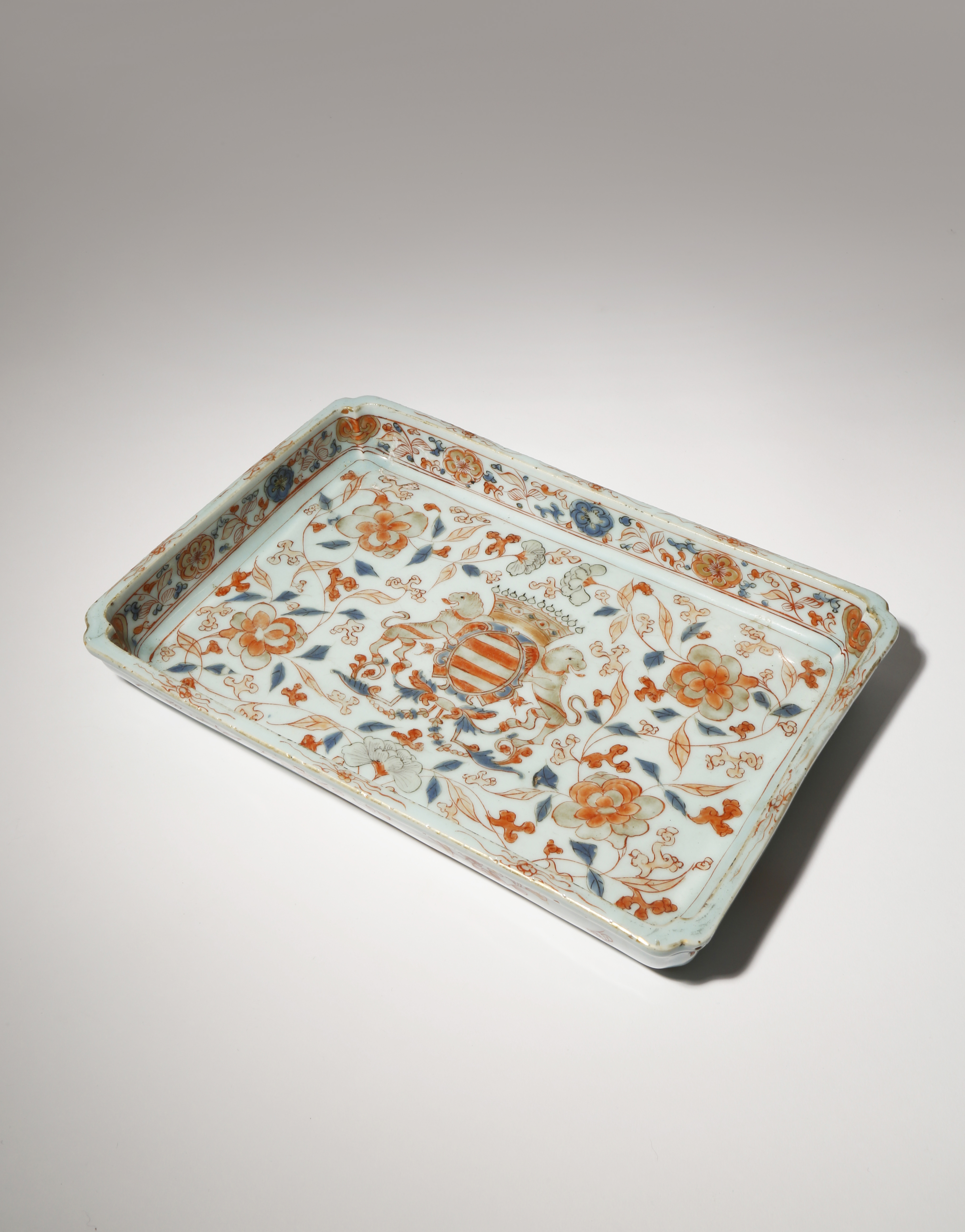 A CHINESE IMARI RECTANGULAR ARMORIAL DISH