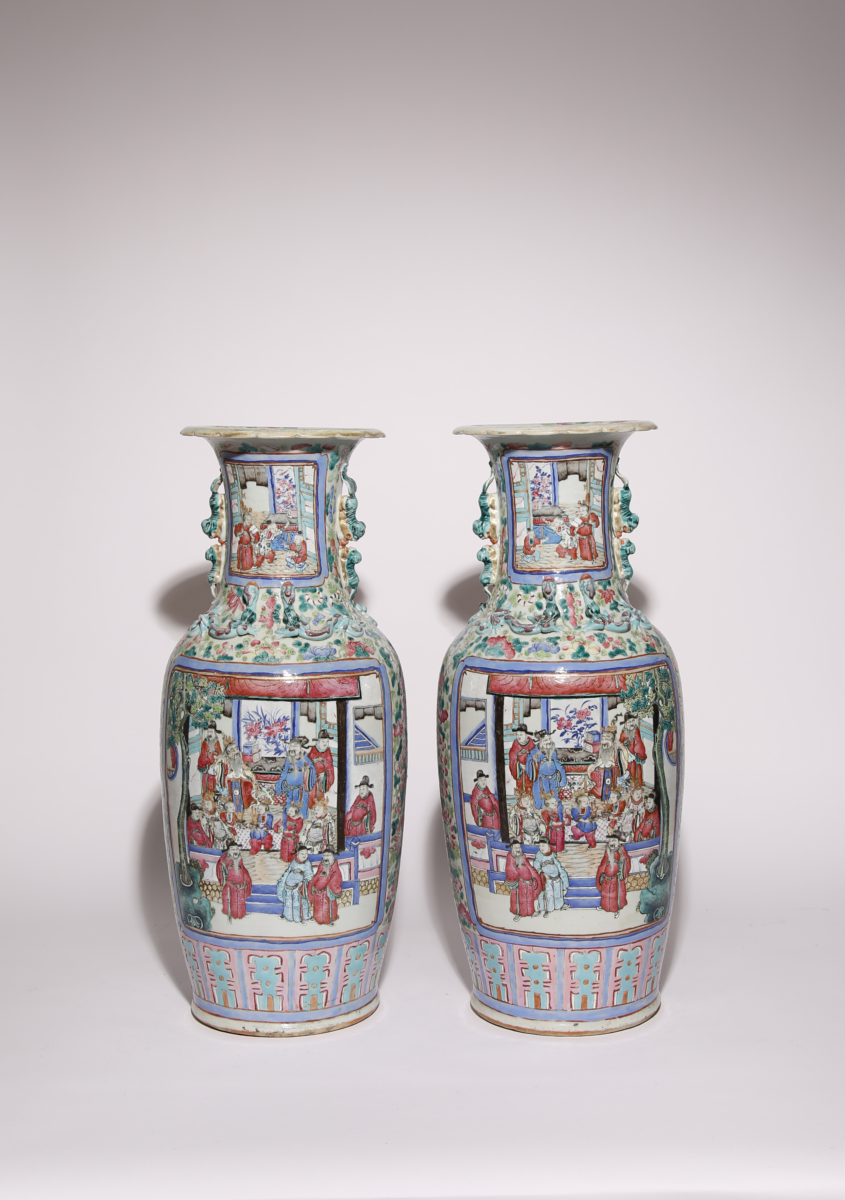 A PAIR OF LARGE CHINESE CANTON FAMILLE ROSE VASES