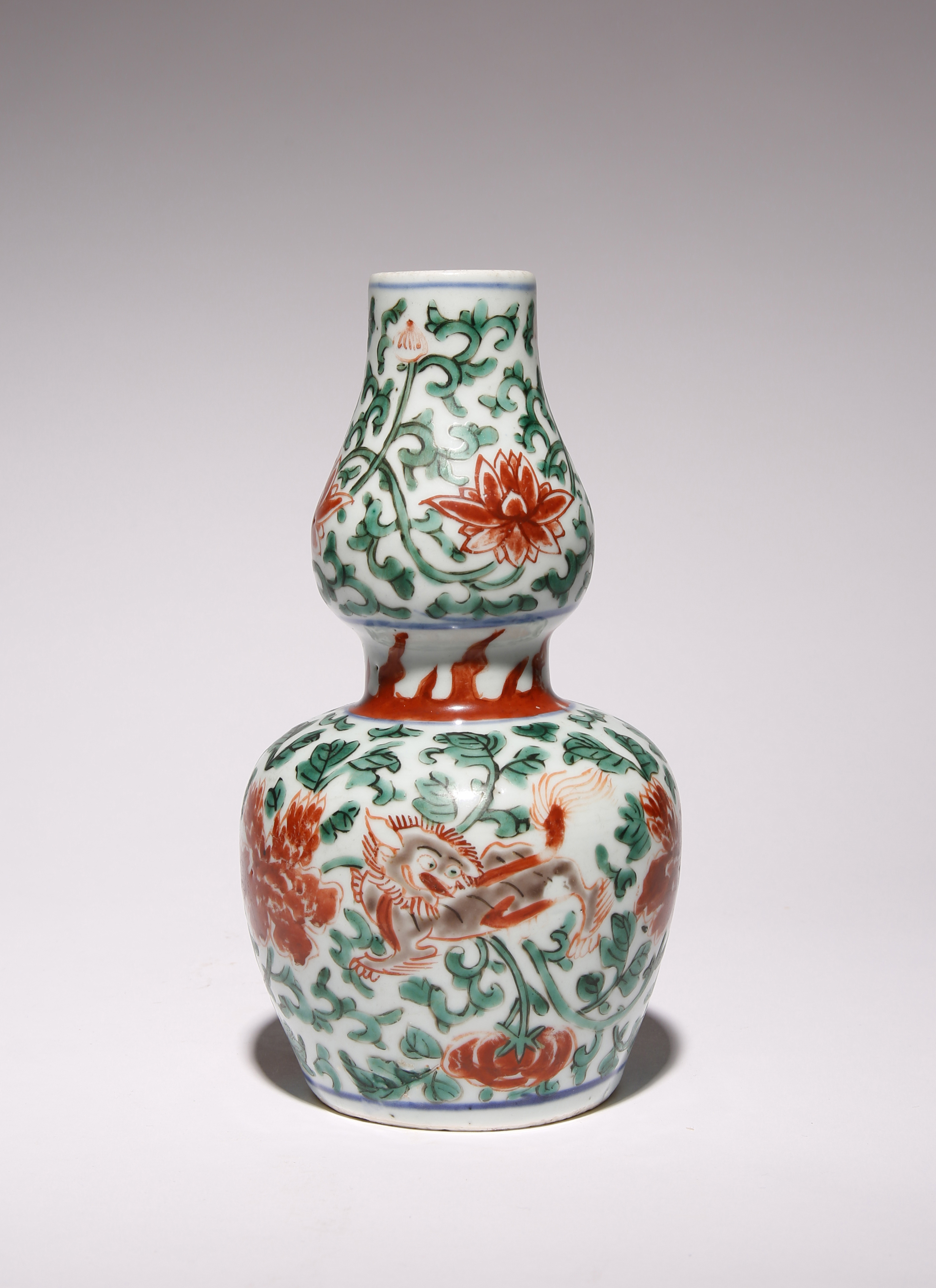 A CHINESE WUCAI GOURD-SHAPED VASE