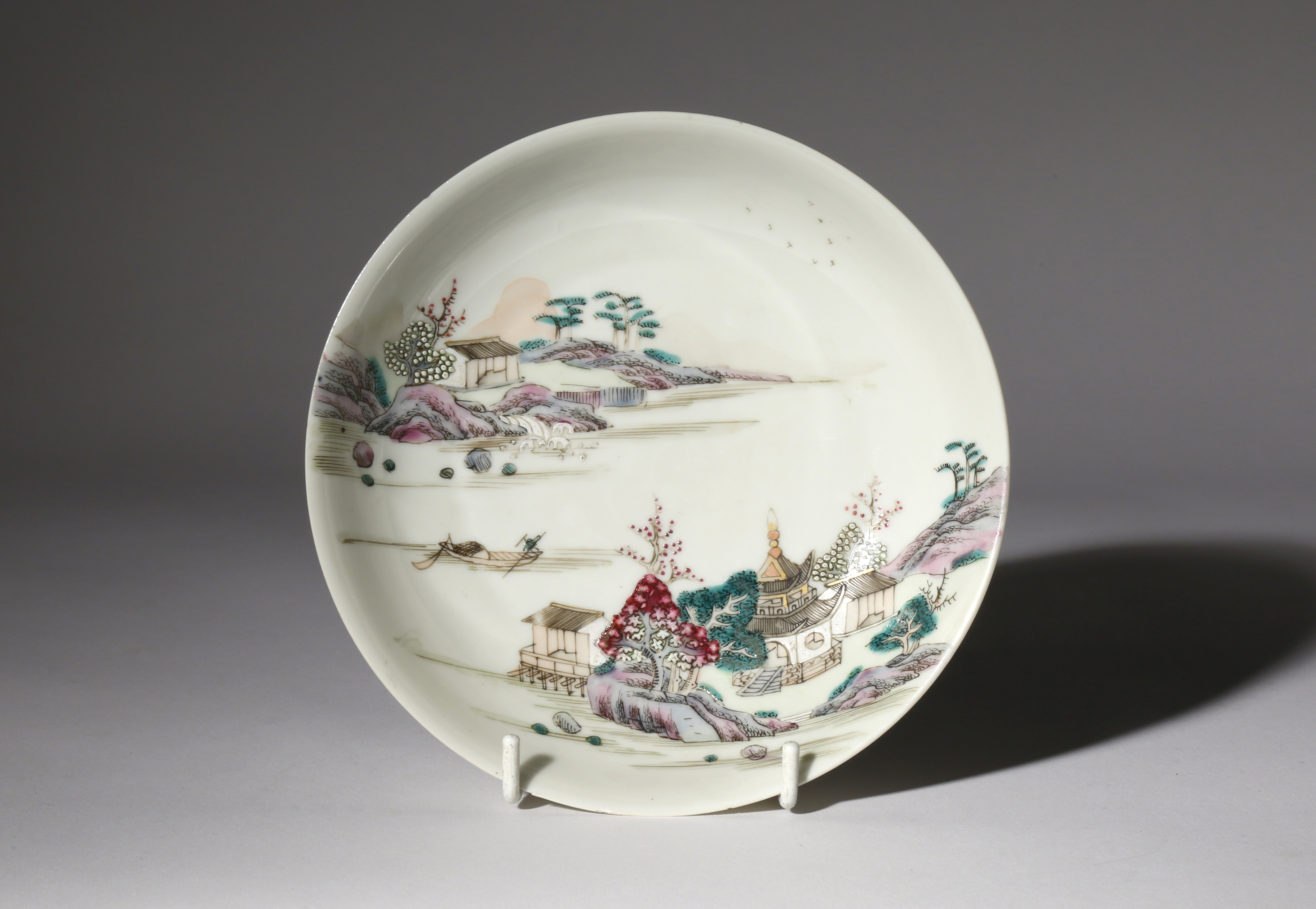 A CHINESE FAMILLE ROSE 'LANDSCAPE' DISH