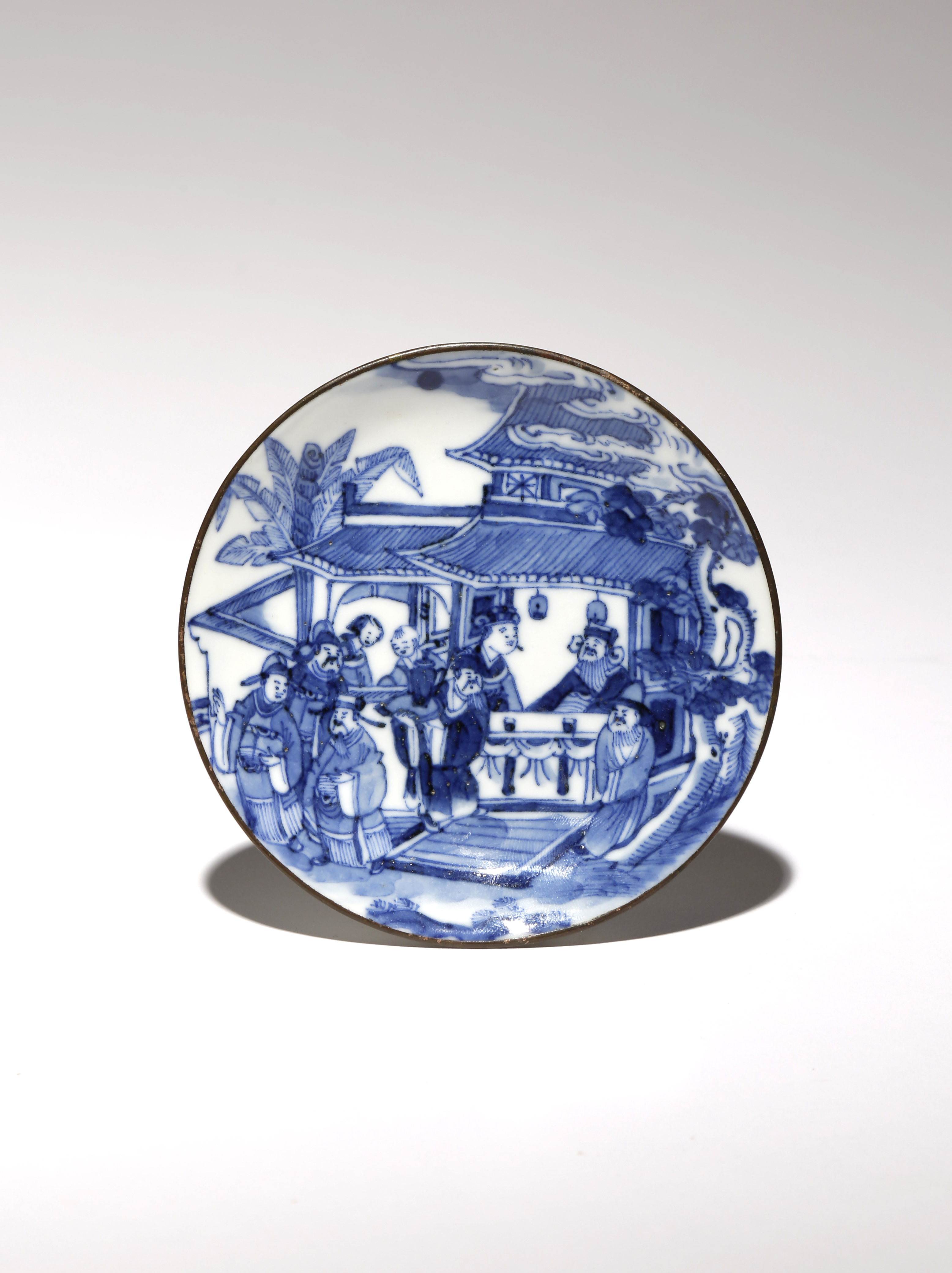 A SMALL CHINESE BLUE AND WHITE SAUCER DISH