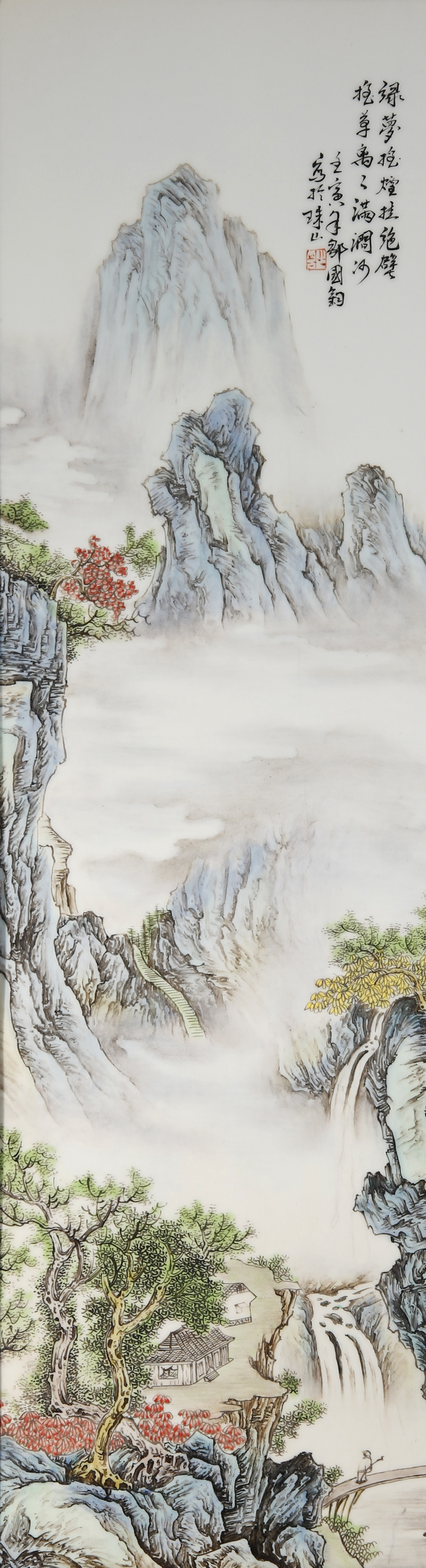 A PAIR OF CHINESE ENAMELLED PORCELAIN RECTANGULAR 'LANDSCAPE' PLAQUES