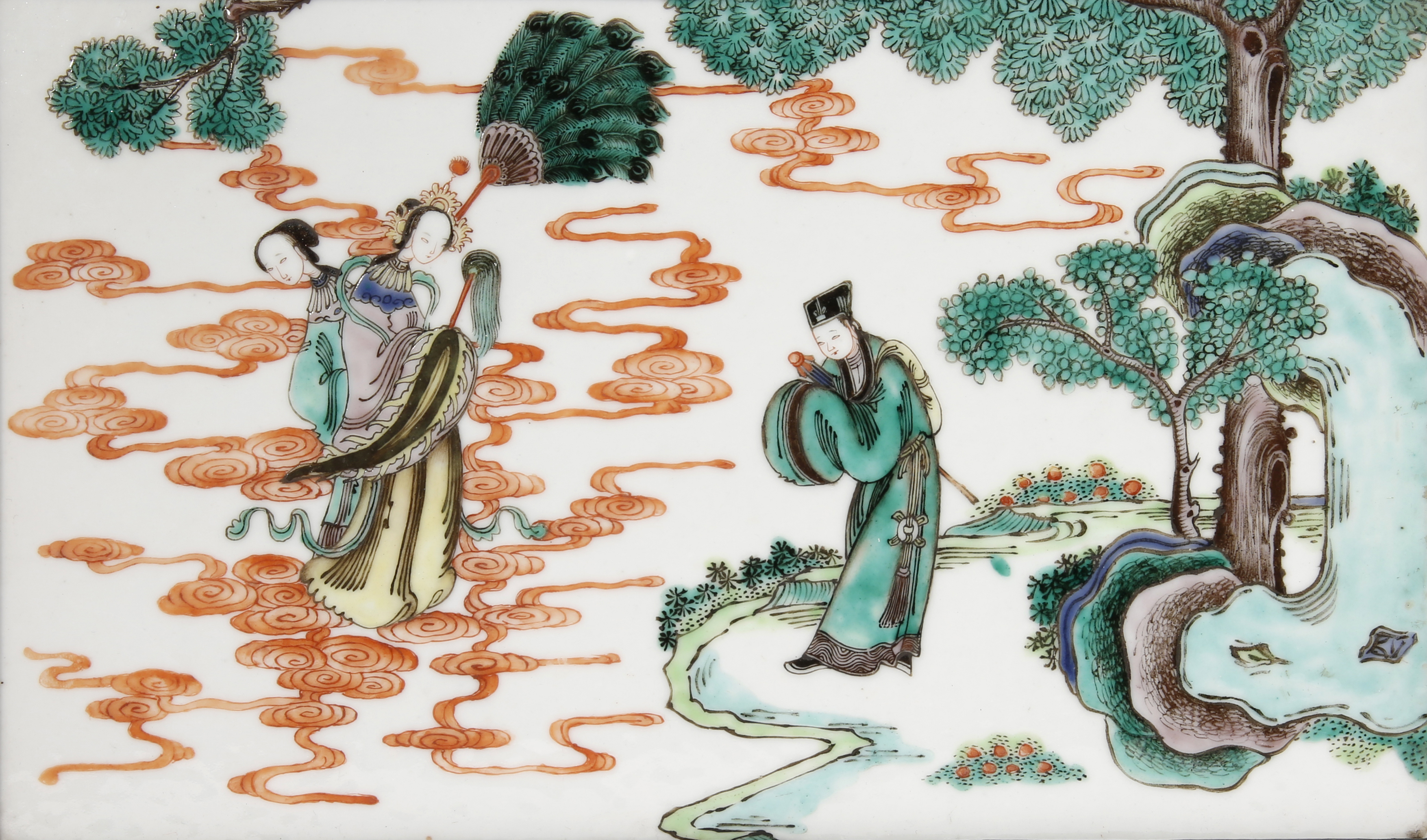 A CHINESE FAMILLE VERTE RECTANGULAR PLAQUE
