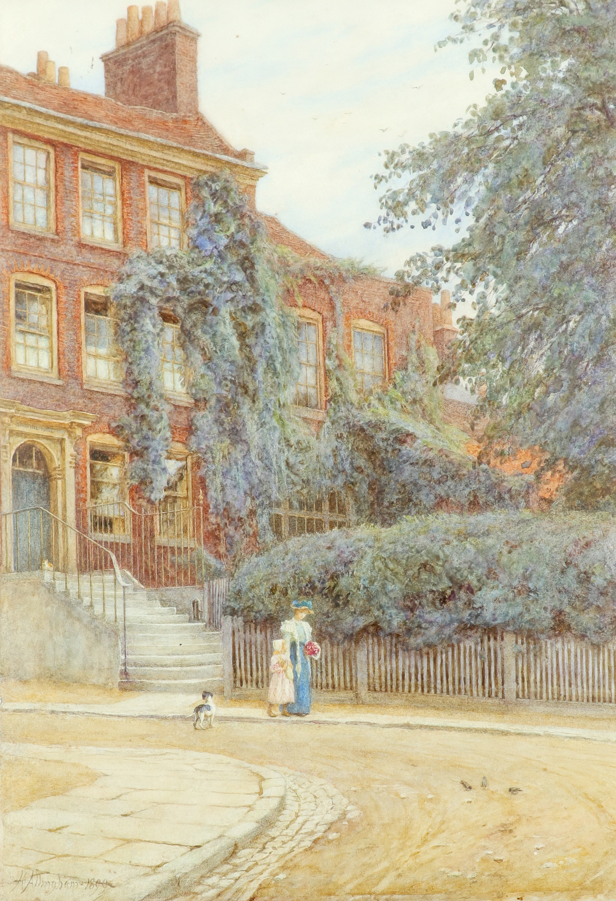 Once the home of marine artist Clarkson Frederick Stanfield (1793-1867), this building was Hampstead's public library when Helen Allingham knew it. She lived in Hampstead for 30 years and this is one of the few town house subjects she painted.