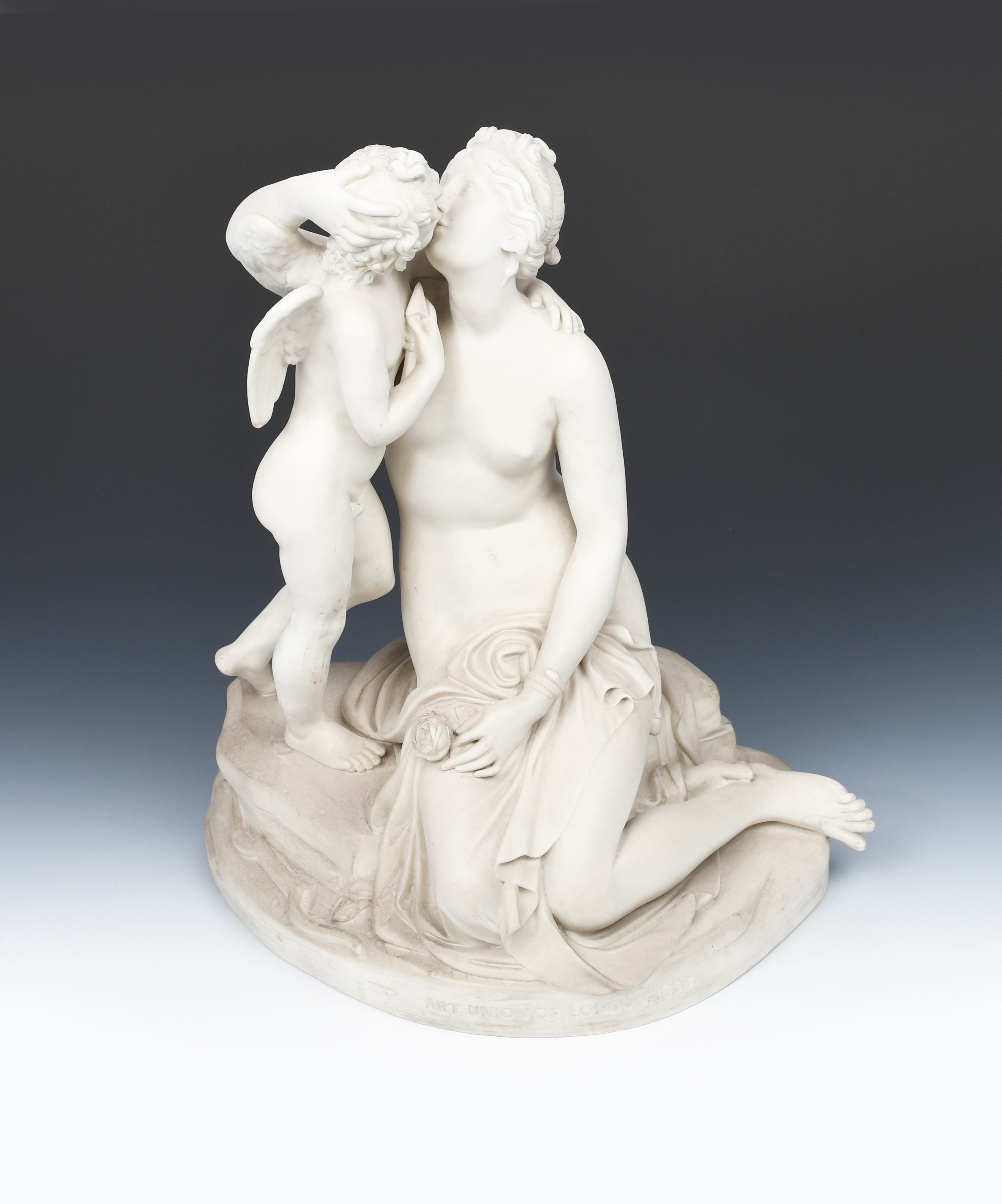 'Cupid and Psyche' a J Ridgway Bates & Co Art Union of London Parian Ware sculpture after J Wilson RA, dated 1858, impressed Art Union of London 1858 to base, 49cm. high