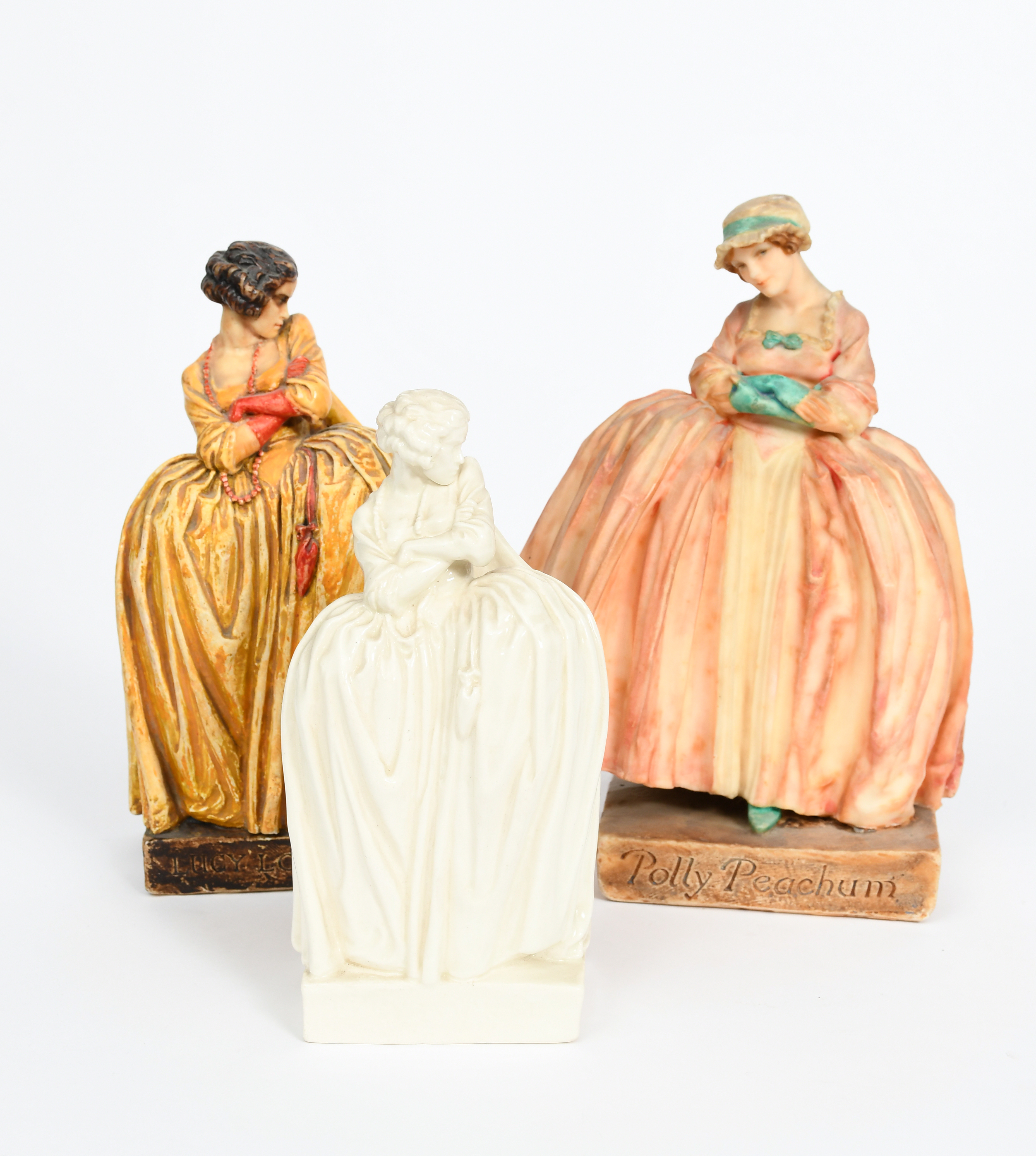 a plaster and wax figure, Lucy Lockit another plaster and wax figure and a Wedgwood white glaze figure of Lucy Lockit dated 1921,