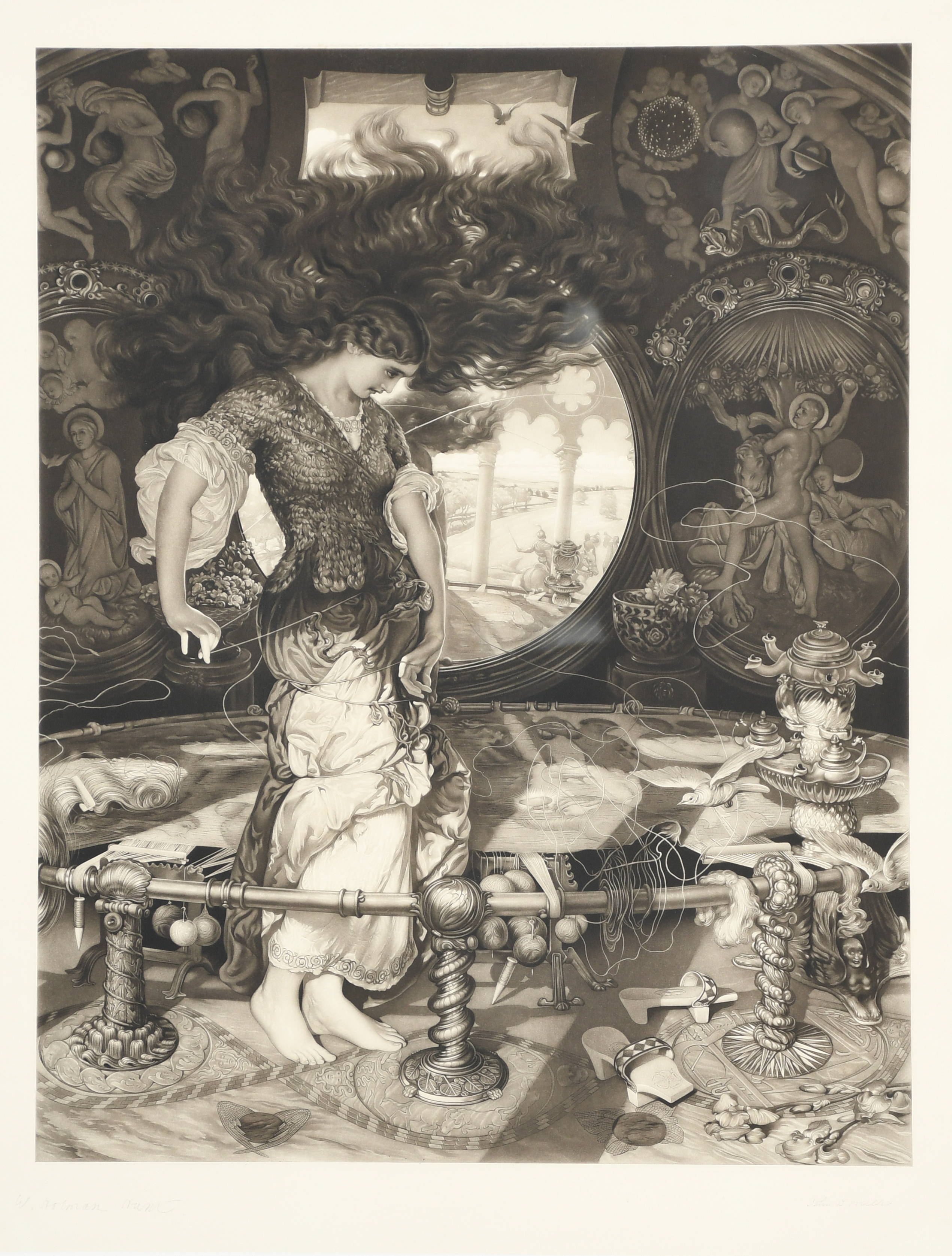 impressed blind stamp, signed W Holman Hunt and John Miller in pencil, printed printers details, copyright 1909 Tooth & Sons,