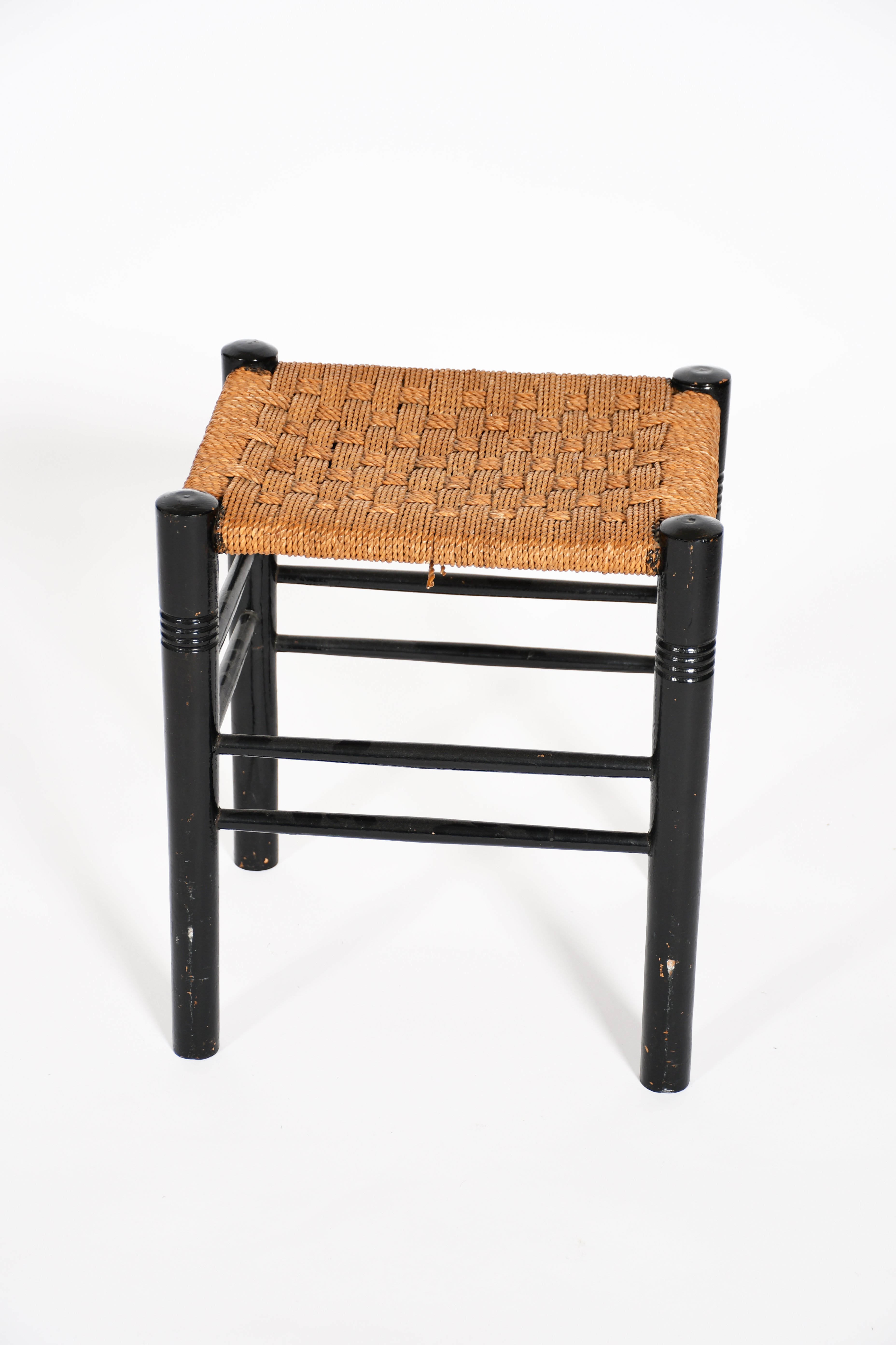 A small ebonised wood stool possibly retailed by Liberty & Co