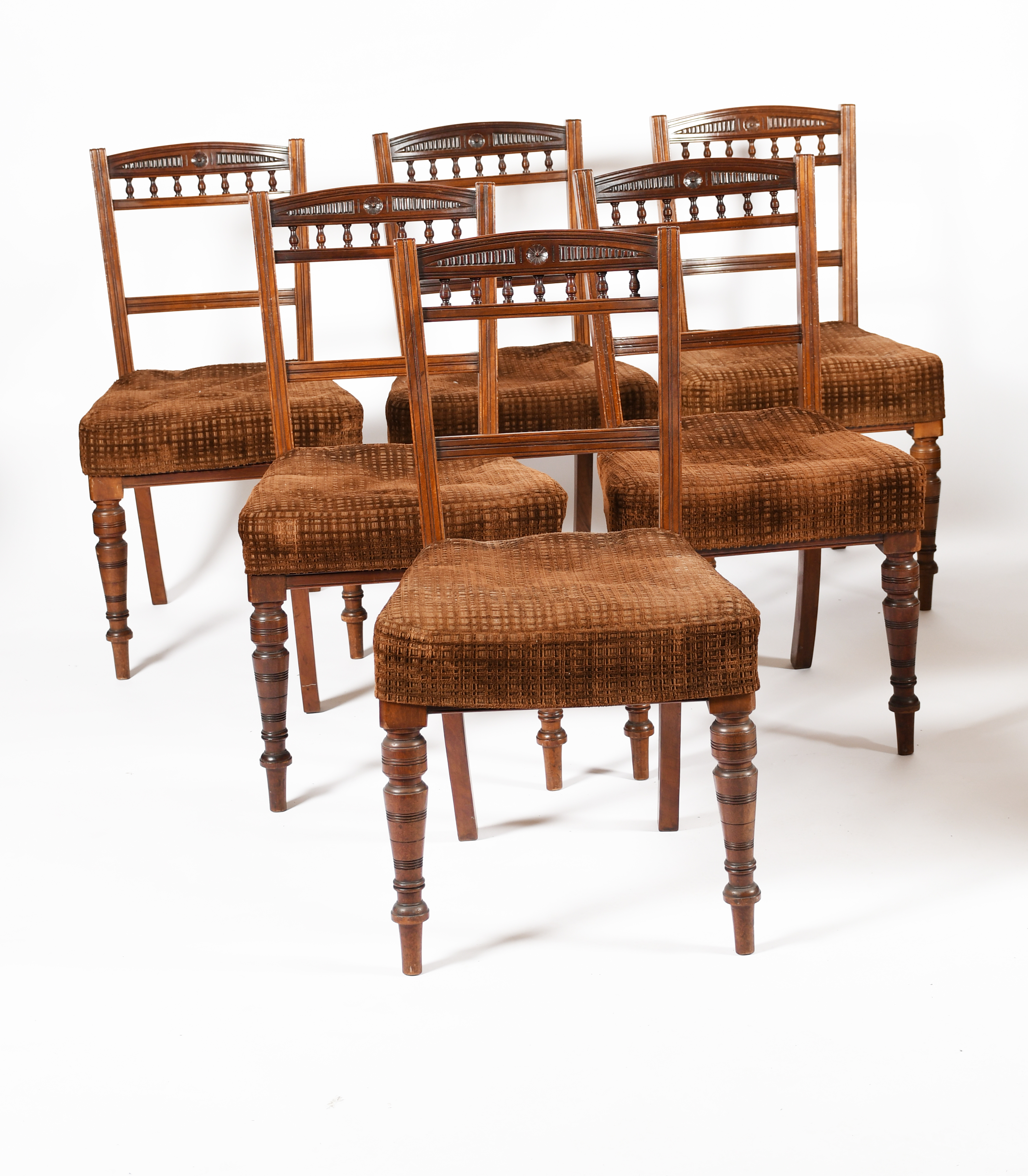 A set of six Aesthetic Movement walnut chairs, with turned legs and bobbin backs, unsigned, 90cm. high (6)