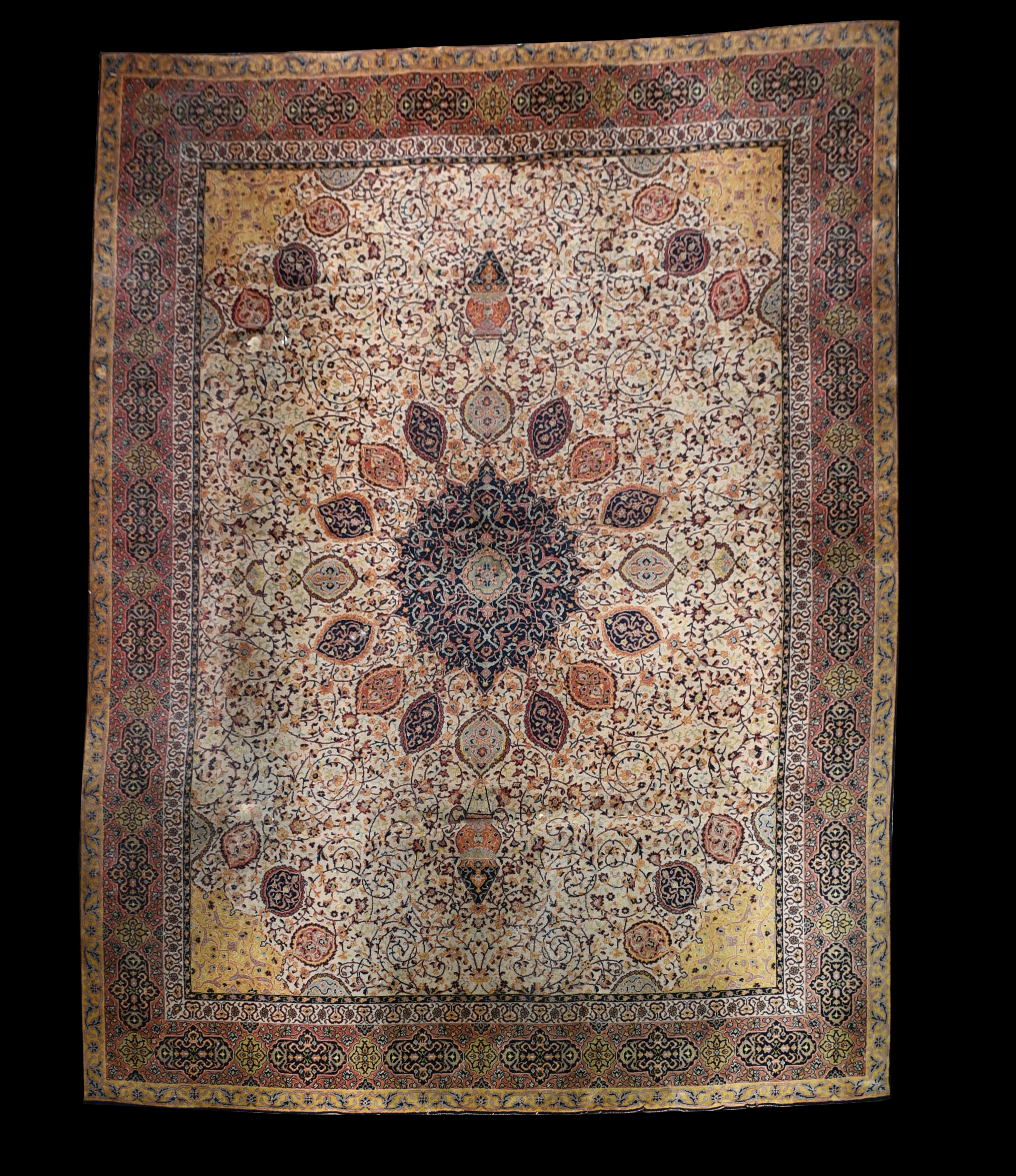 A large Templeton Arran seamless Wilton square carpet, machine made, central floral panel in red, blue, turquoise and yellow on a cream ground, applied label, 412.5 x 322cm.