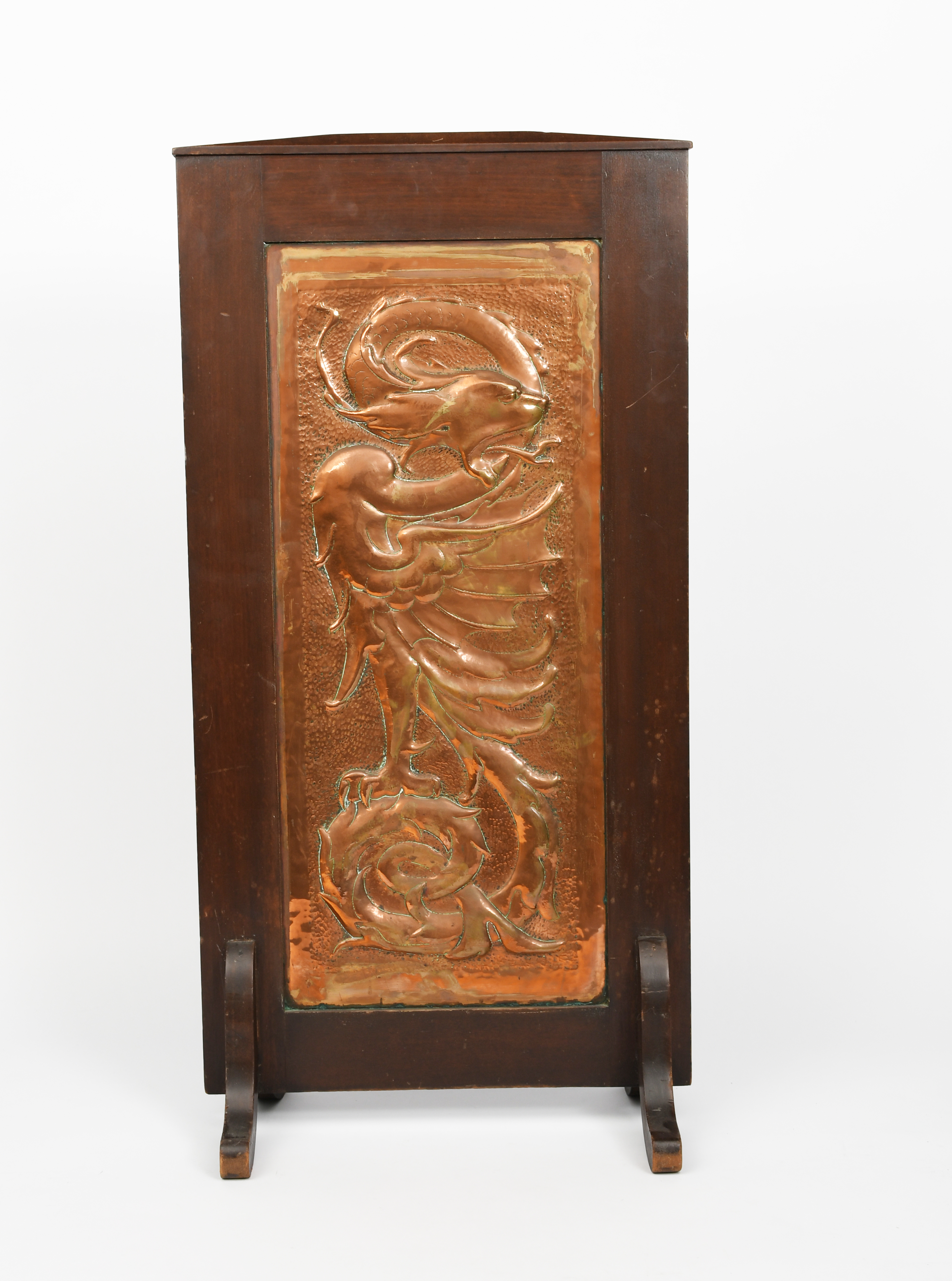 A copper panel of a dragon, stamped in low relief with a stylised dragon, in wooden frame, unsigned, 70 x 30cm (panel)