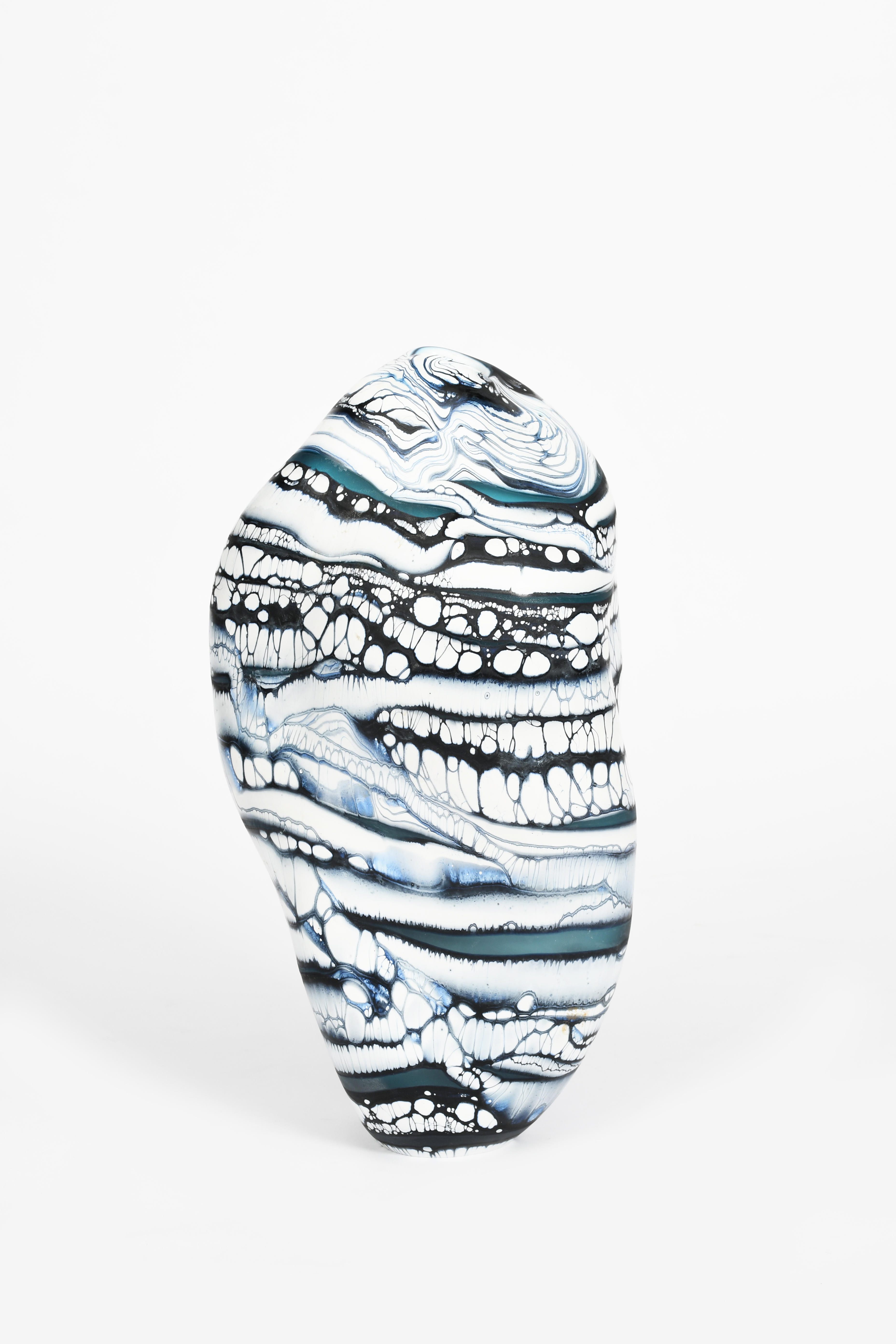 irregular form white glass with blue bands,