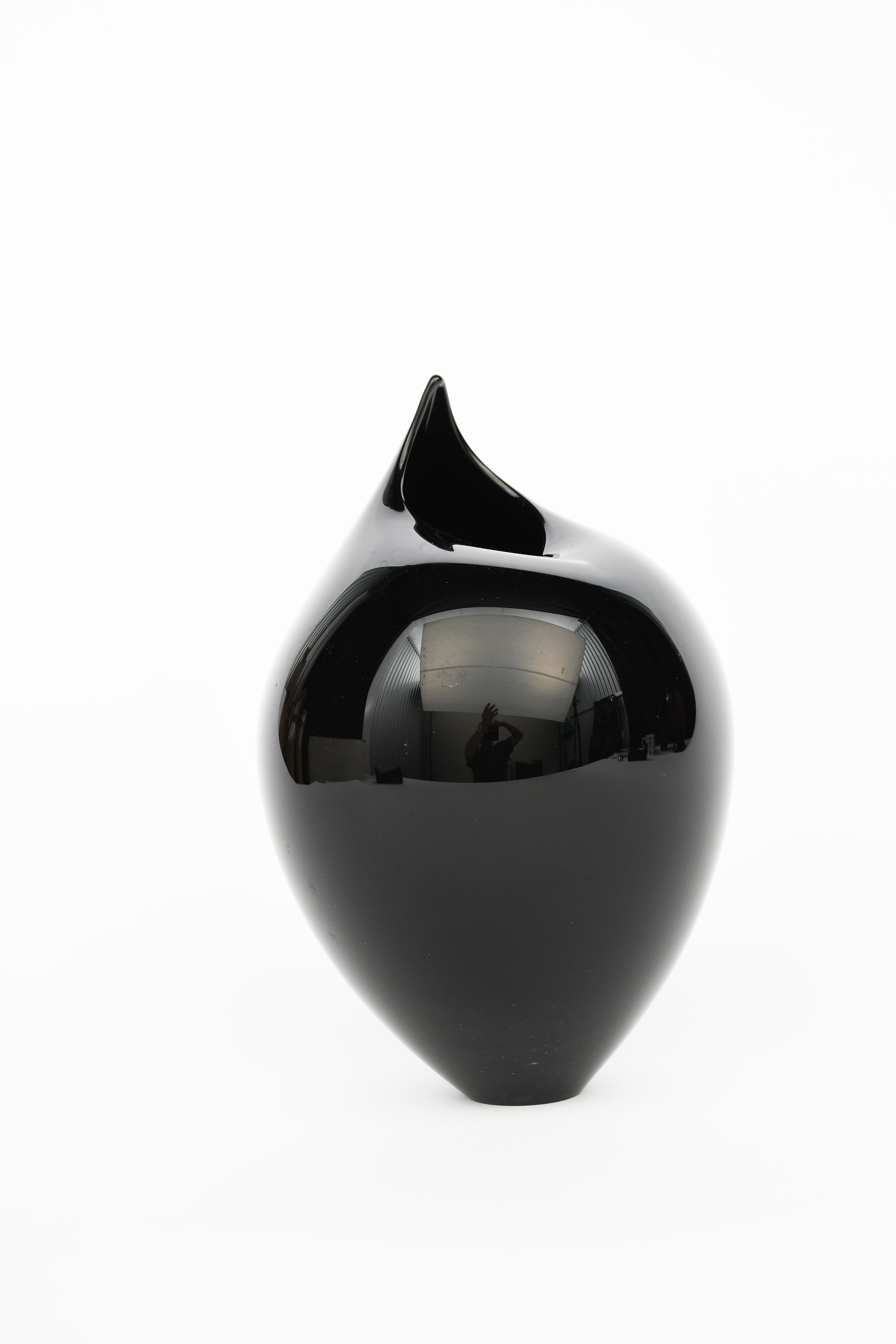 black glass, ovoid with pulled rim,