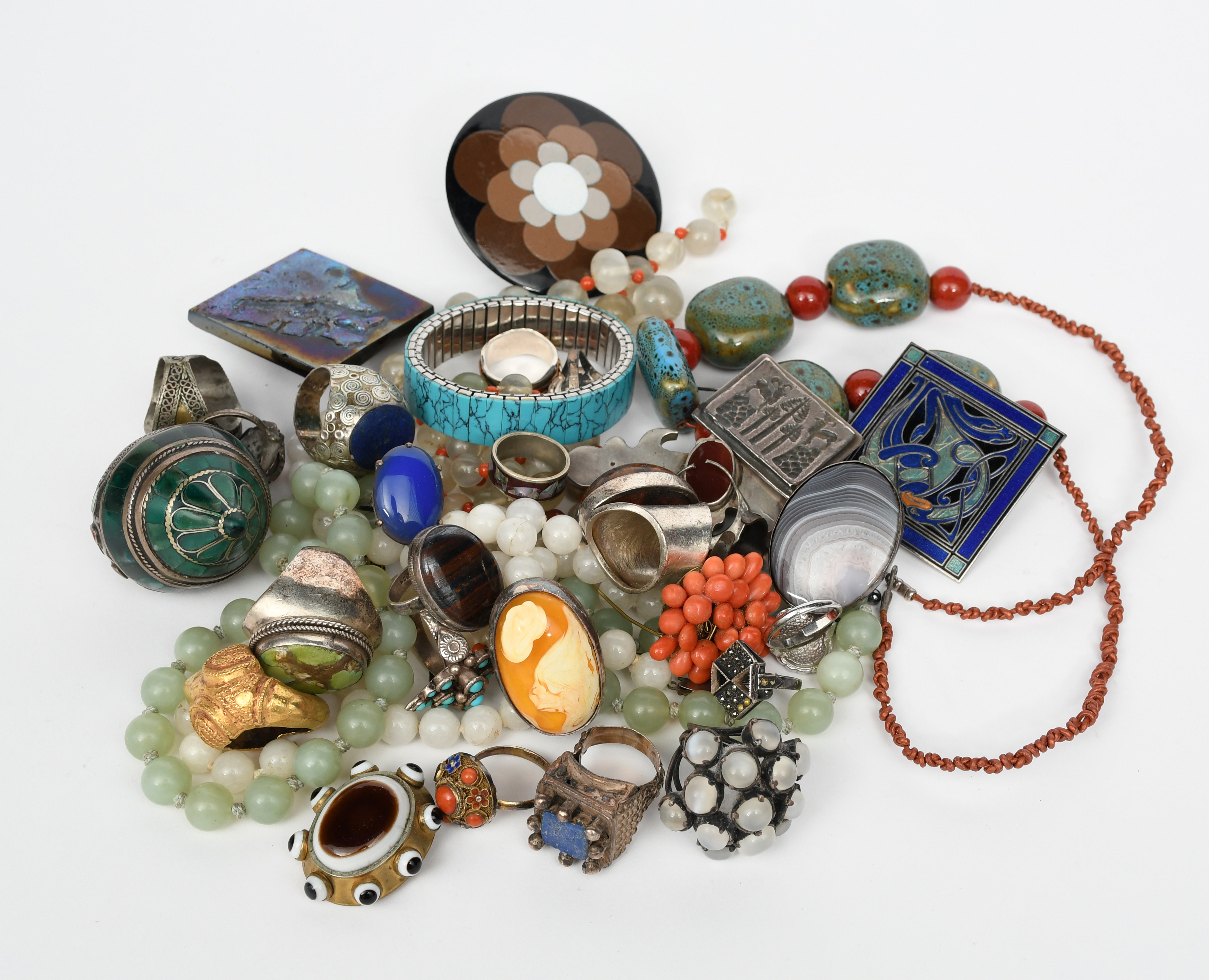 A quantity of jewellery and watches, including a sterling silver and mixed metal ring, a Braun stainless steel wristwatch, a Calvin Klein stainless steel wristwatch, a Stuhrling wristwatch, and two jewellery cabinets, various marks, (a lot)