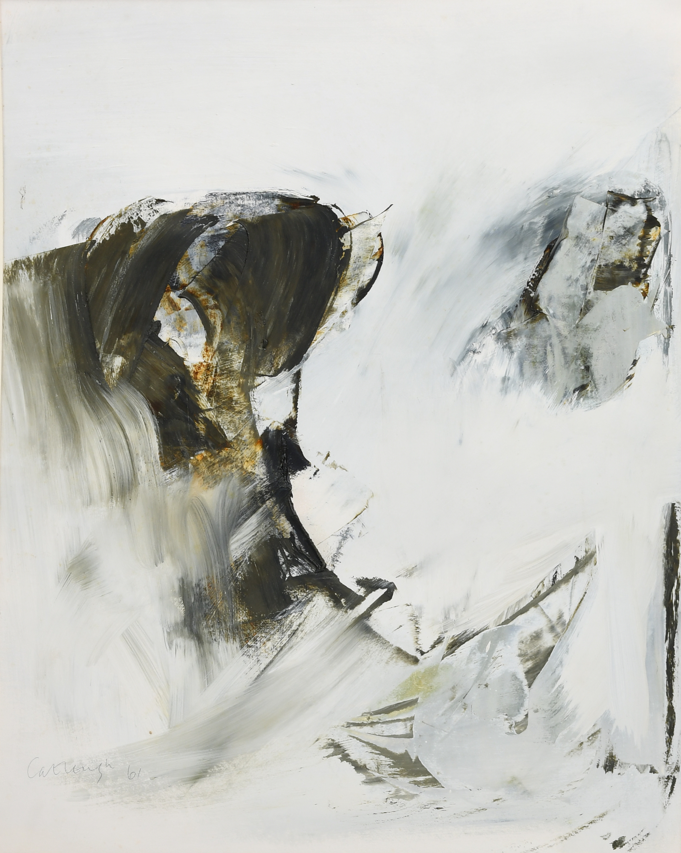 an early acrylic on paper, mounted, four others and four smaller abstract paintings in acrylic on paper by Jon Catleugh