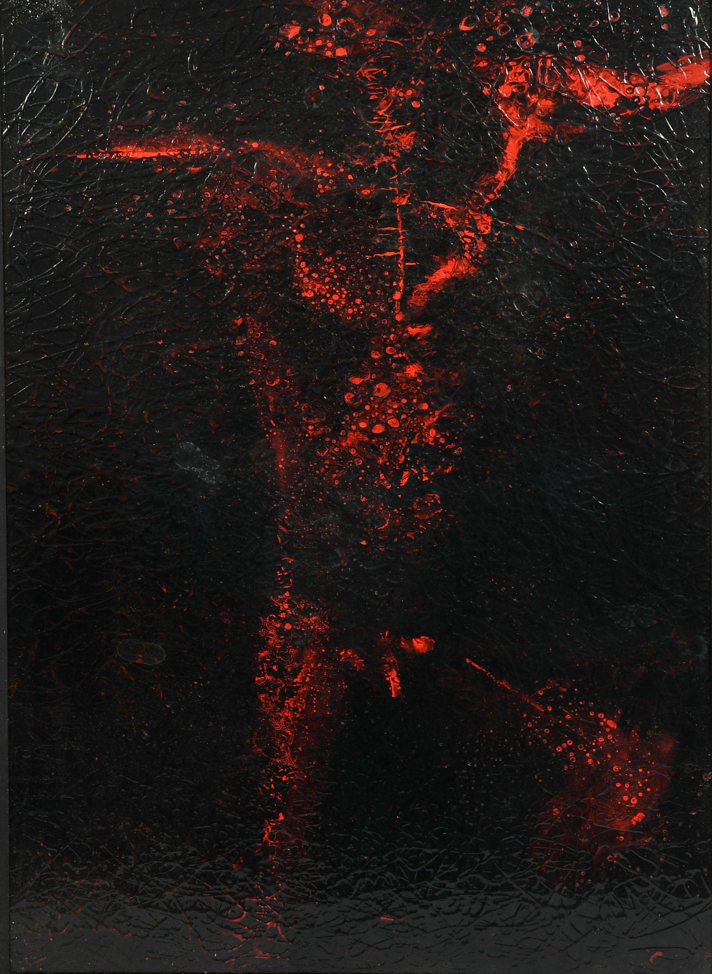 a large acrylic on board, framed, and eleven other acrylic on board figure studies by Jon Catelugh